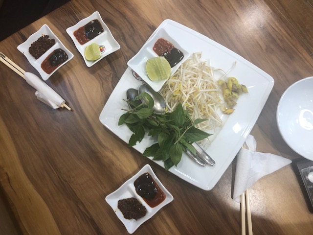 베트남 쌀국수 먹을 때 빠지면 너무 썰렁한 숙주가 먼저 서빙됐다. 그리고 발빠르게 셀프 코너에서 미리미리 소스를
