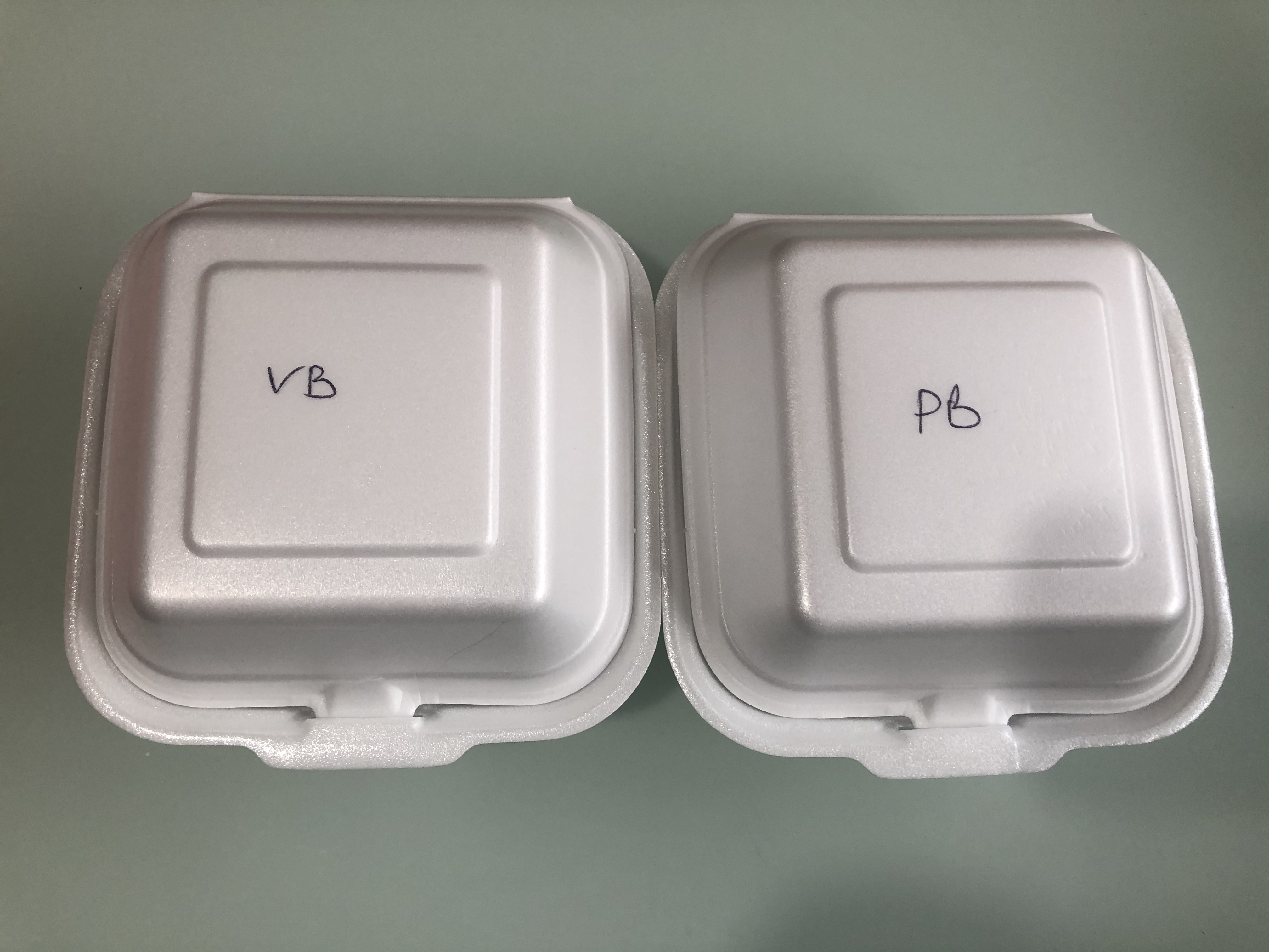 사진에는 없지만, 스티로폼 팩 안에 한 겹 더 종이로 포장해서 햄버거가 들어있다.