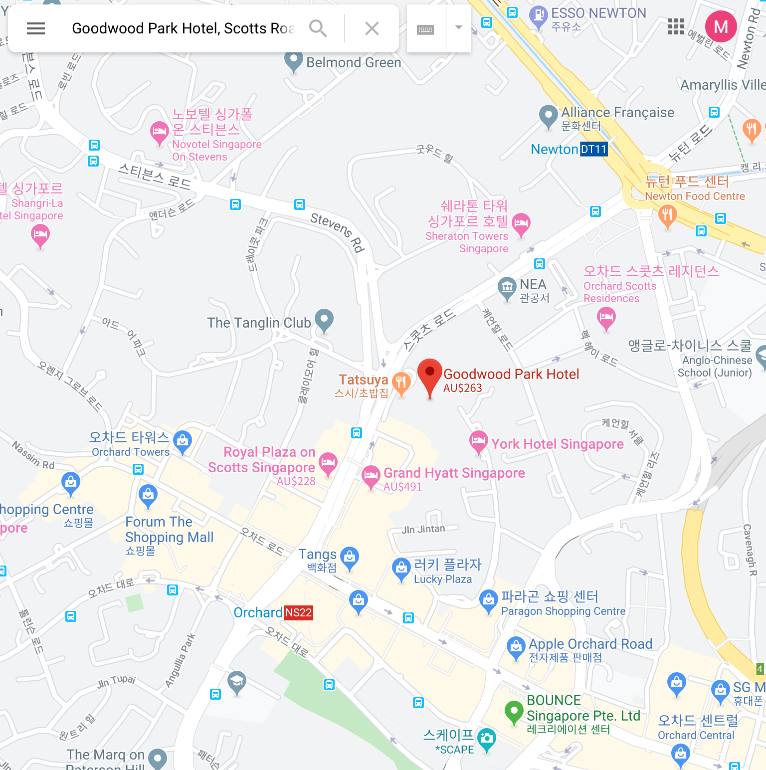 굿우드 파크 호텔 위치는 싱가포르의 가장 핫한 오차드에서 그리 멀지 않은 곳에 있다.