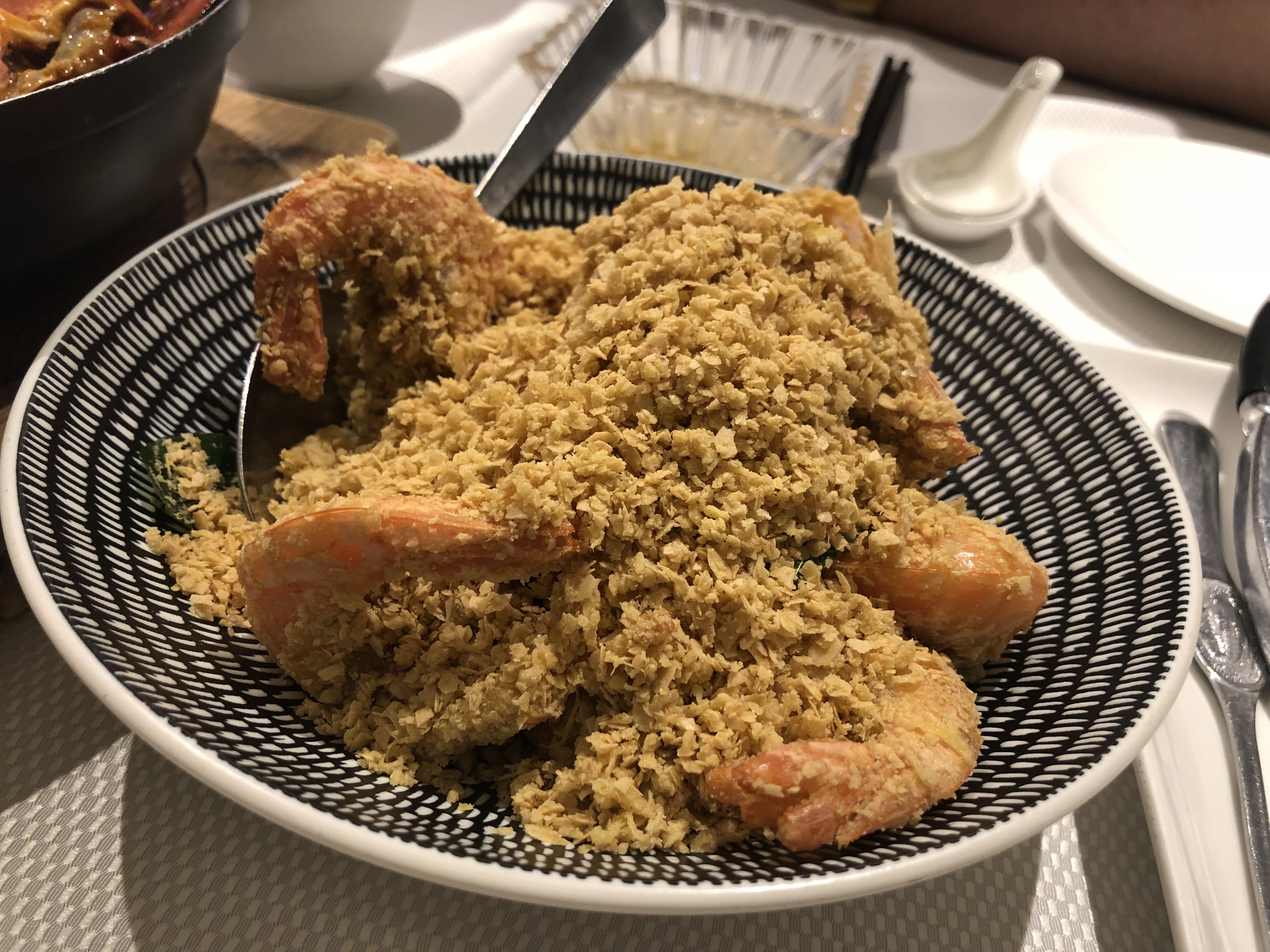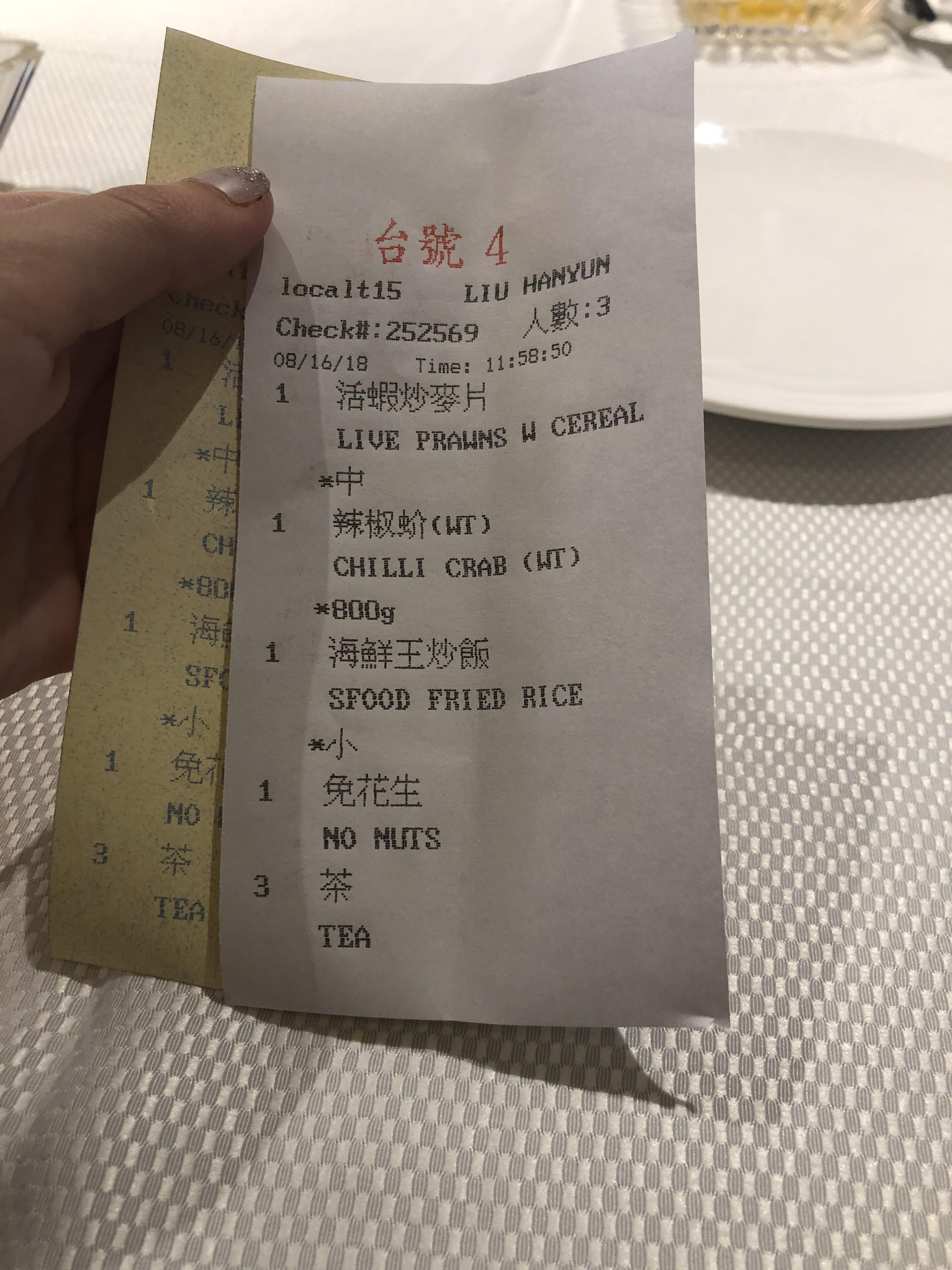 나는 칠리크랩, 씨리얼 새우, 해산물 볶음밥, 티 3개 이렇게 주문했다.