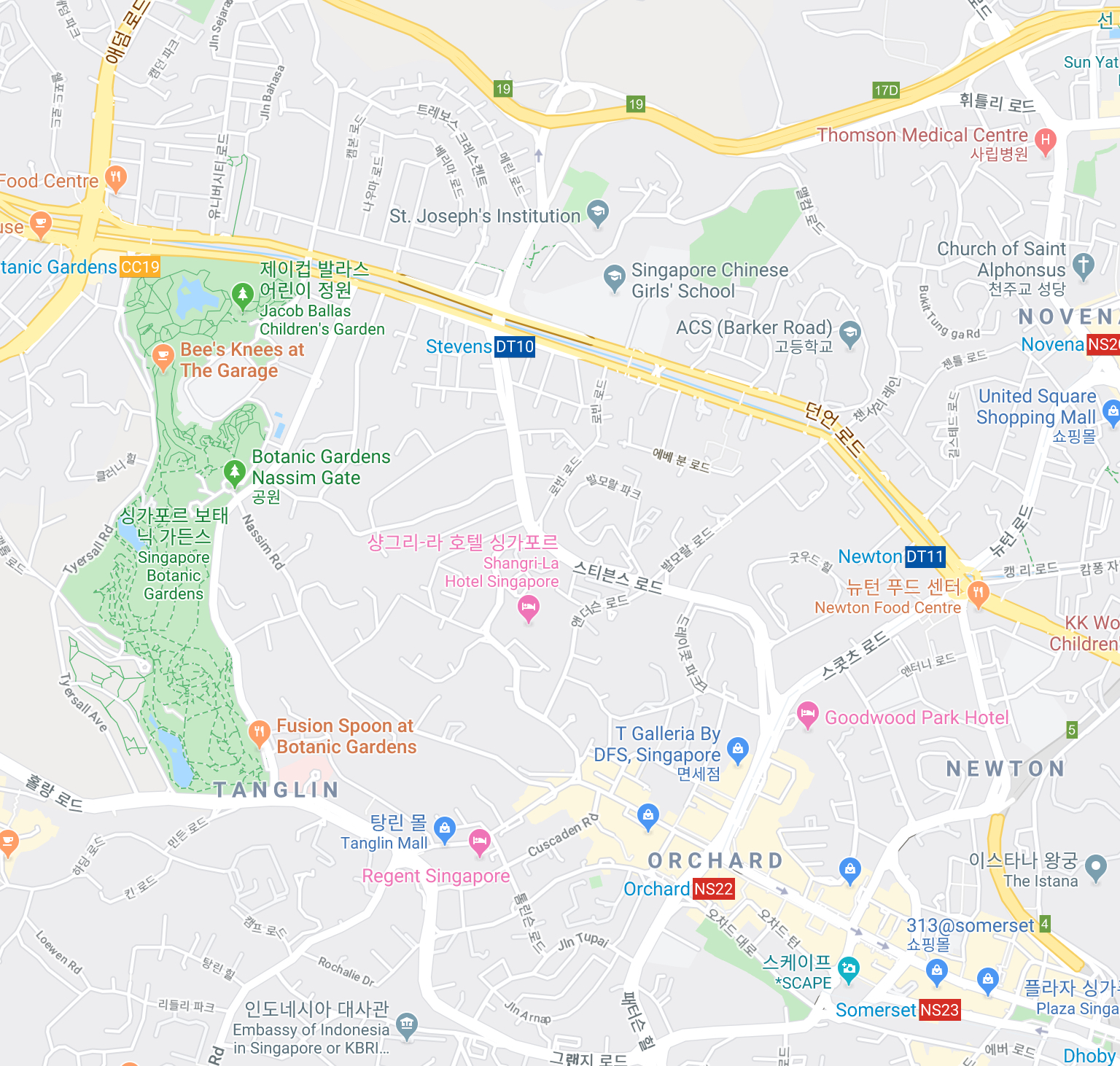 보타닉 가든 위치이다. 지도에서 보다시피 오차드 거리에서도 꽤 멀리 떨어져있다.