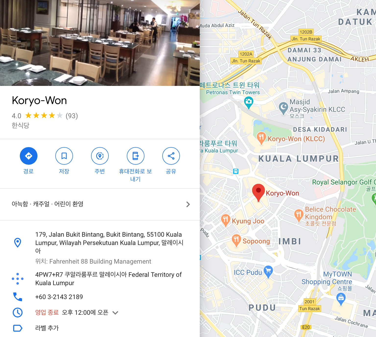 쿠알라룸푸르에서 가장 먼저 찾은 곳은 고려원이라는 한식집이였다.