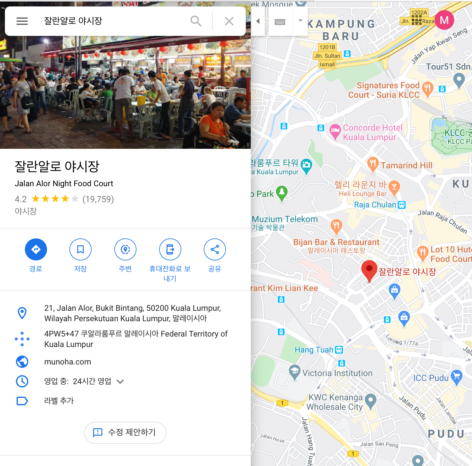잘란얄로 야시장 위치이다. 구글맵에 한국어로 "잘란얄로" 라고 쳐도 나온다.