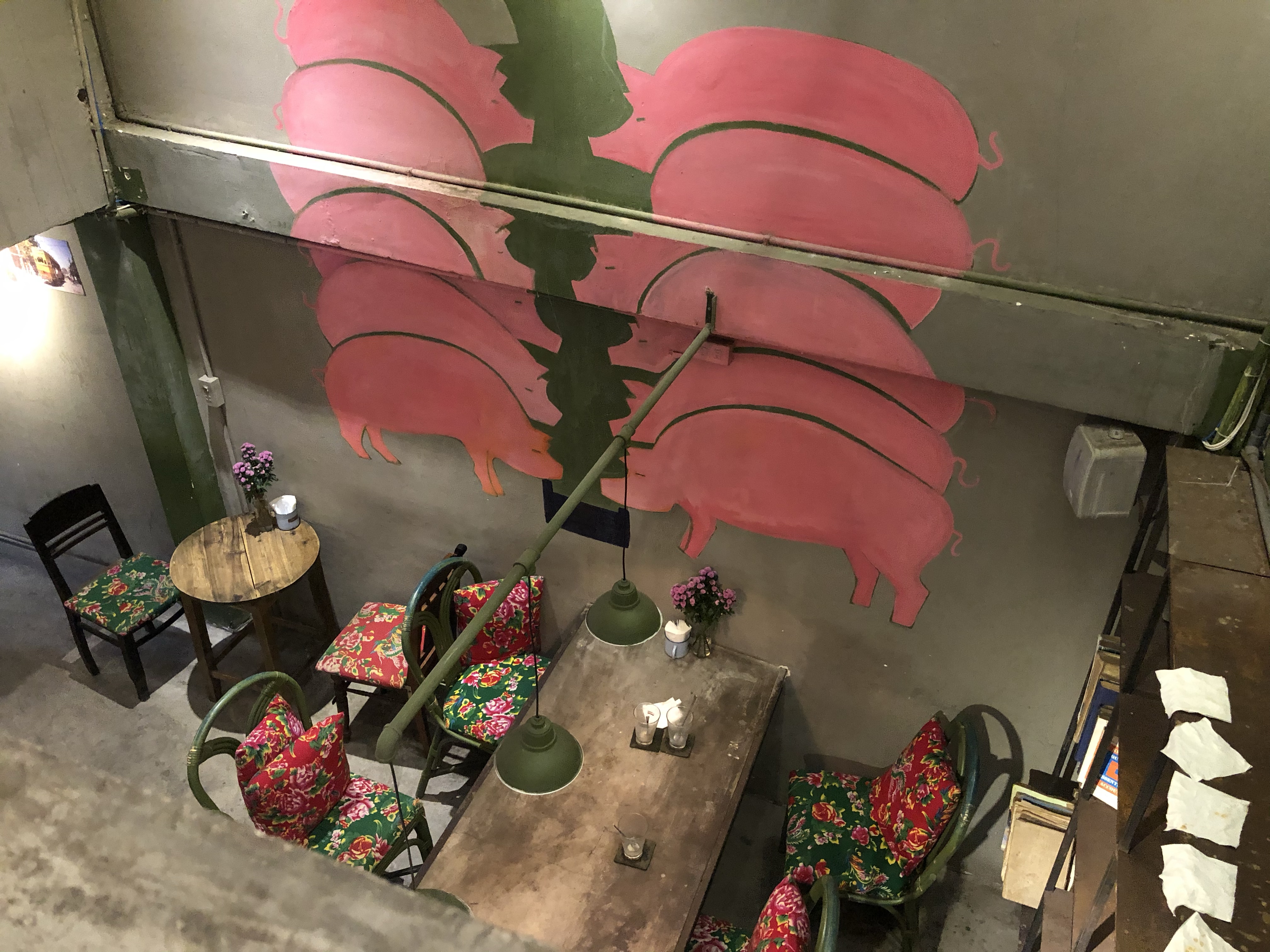 콩 카페 내부는 이렇게 중국풍 스러운 의자들 + 알 수 없는 벽화로 되어있었다.
