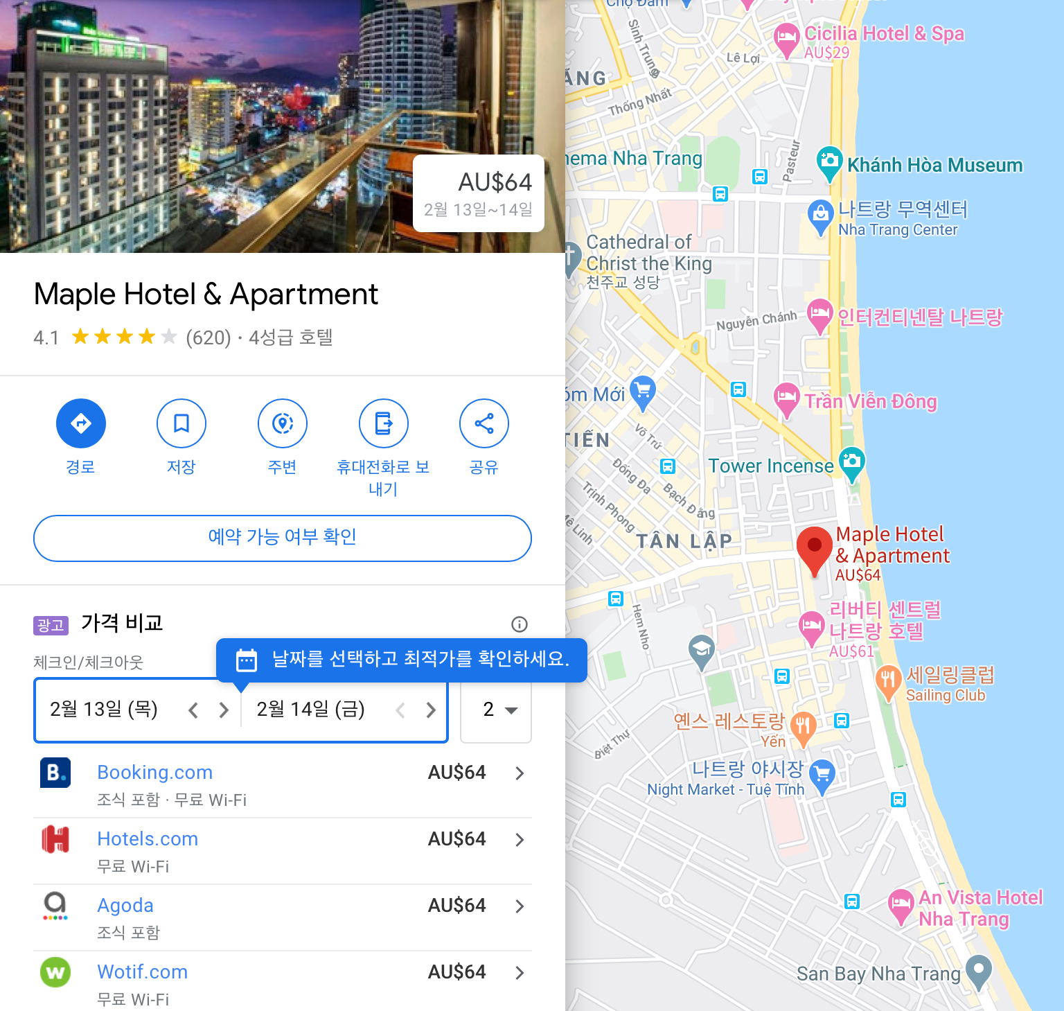 이 로컬 맛집은 구글에 딱히 등록된 기록이 없는 것 같아서, 맵 사진은 메이플 호텔로 대신한다.