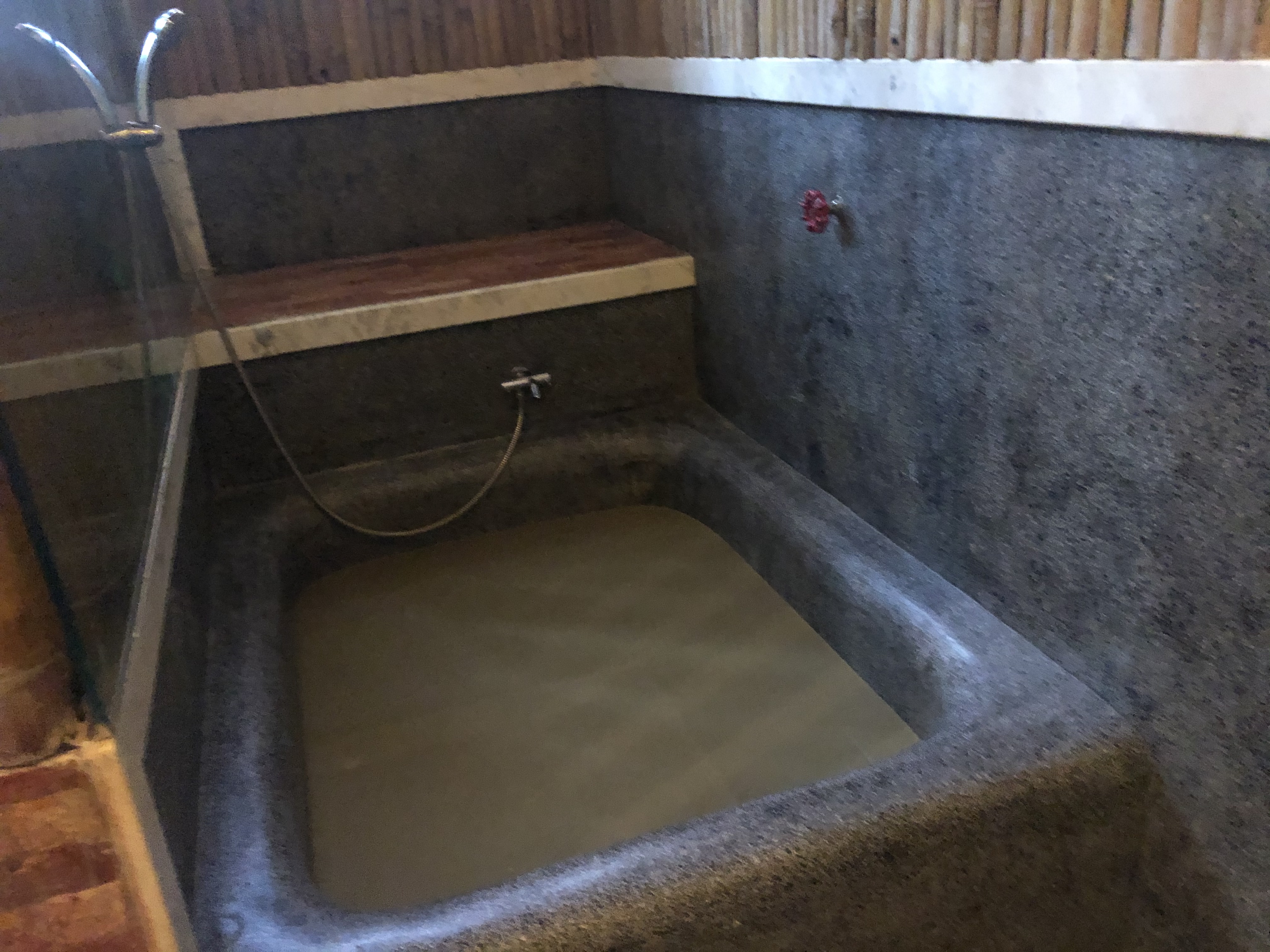 자쿠지 욕조는 이렇게 1인용인데, 사방에서 수압 마사지가 작동되고 있어서 아주 시원했다.