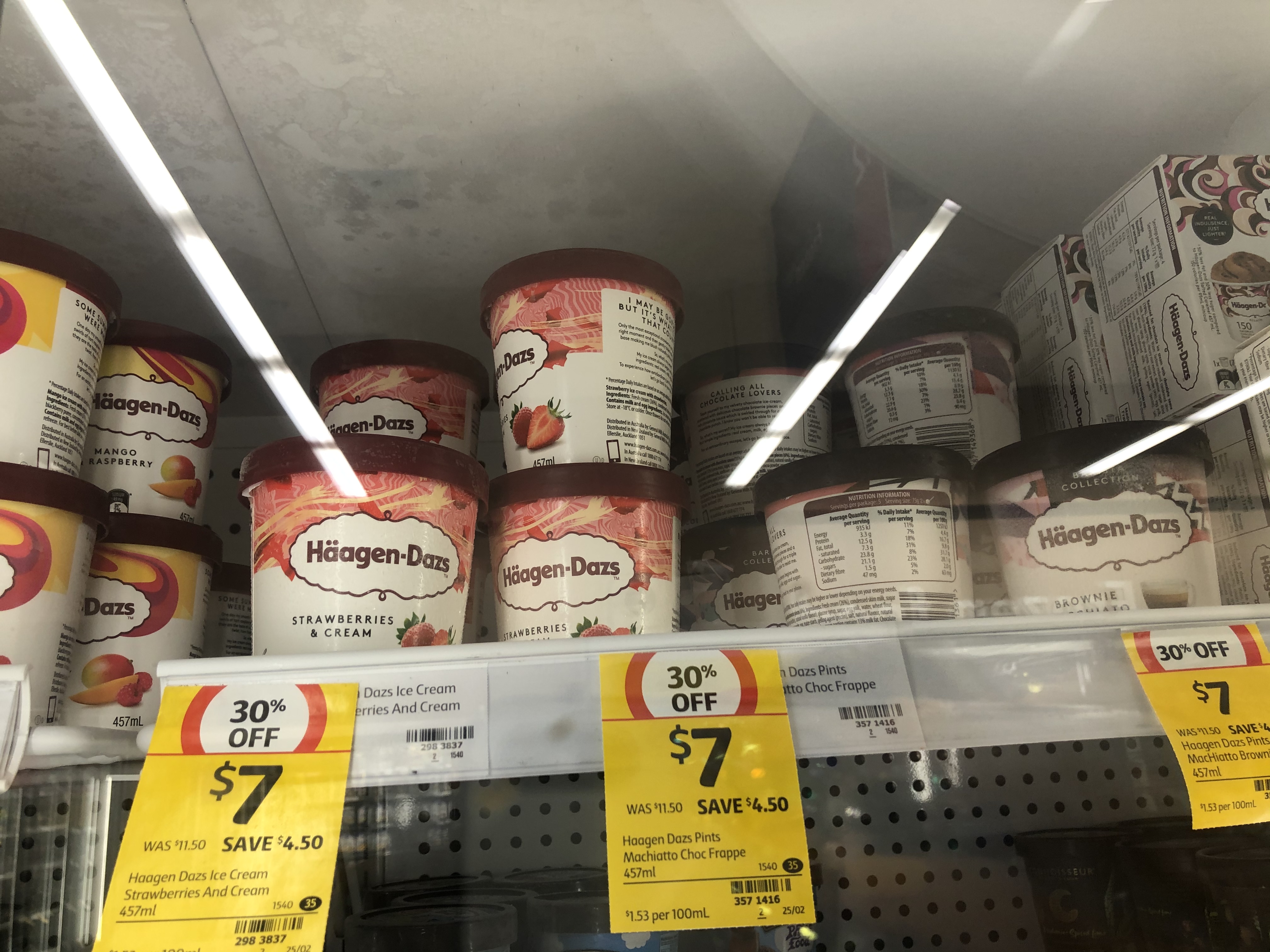 마침 콜스에서 내 사랑 사라리 아이스크림이 50% 세일을 하고 있어서 사려고 기웃거렸다.