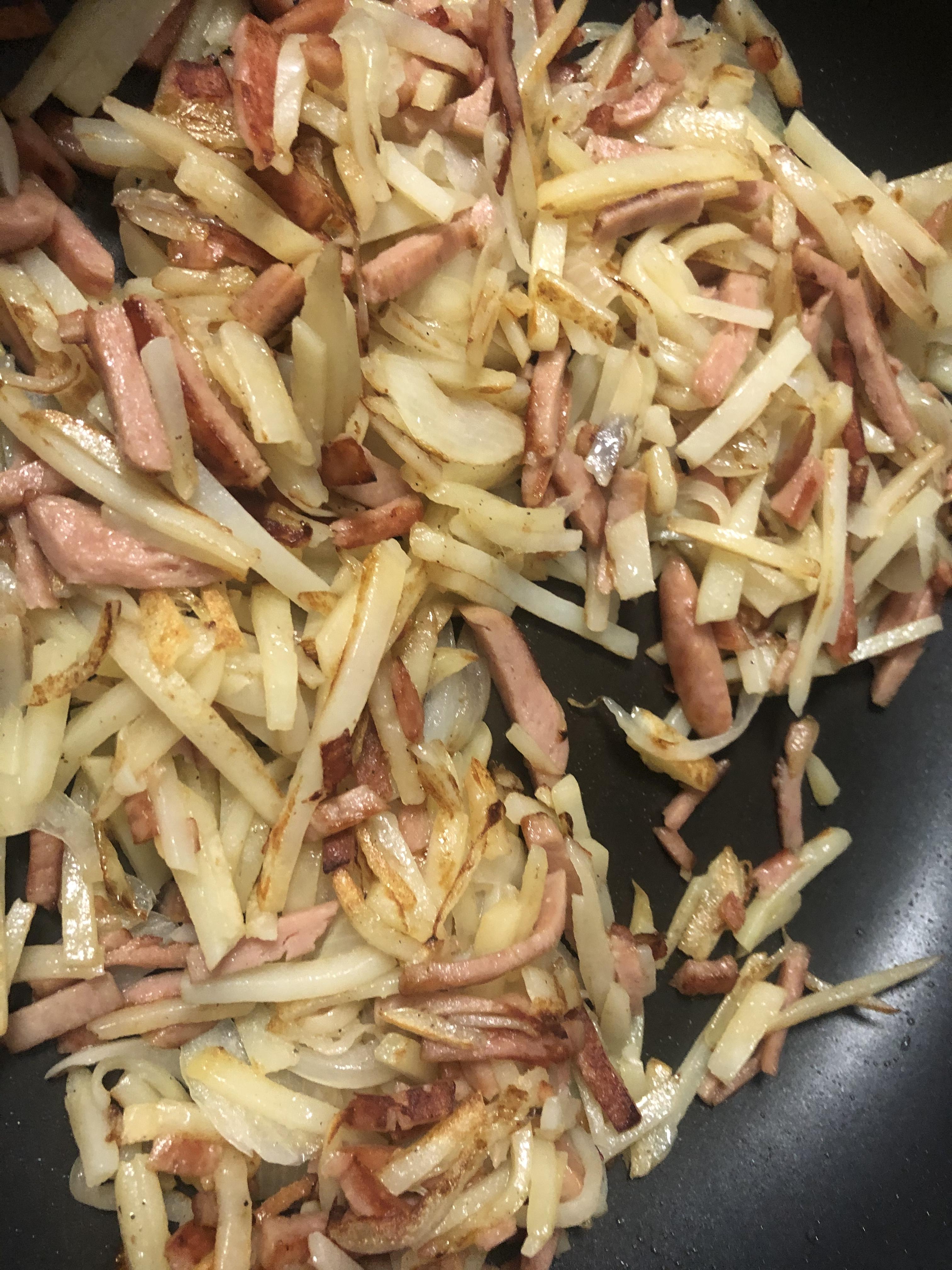 콜스에서 장 본 후 집에 와서는 재빨리 감자, 양파, 스팸을 썰어서 감자채 볶음을 했다.