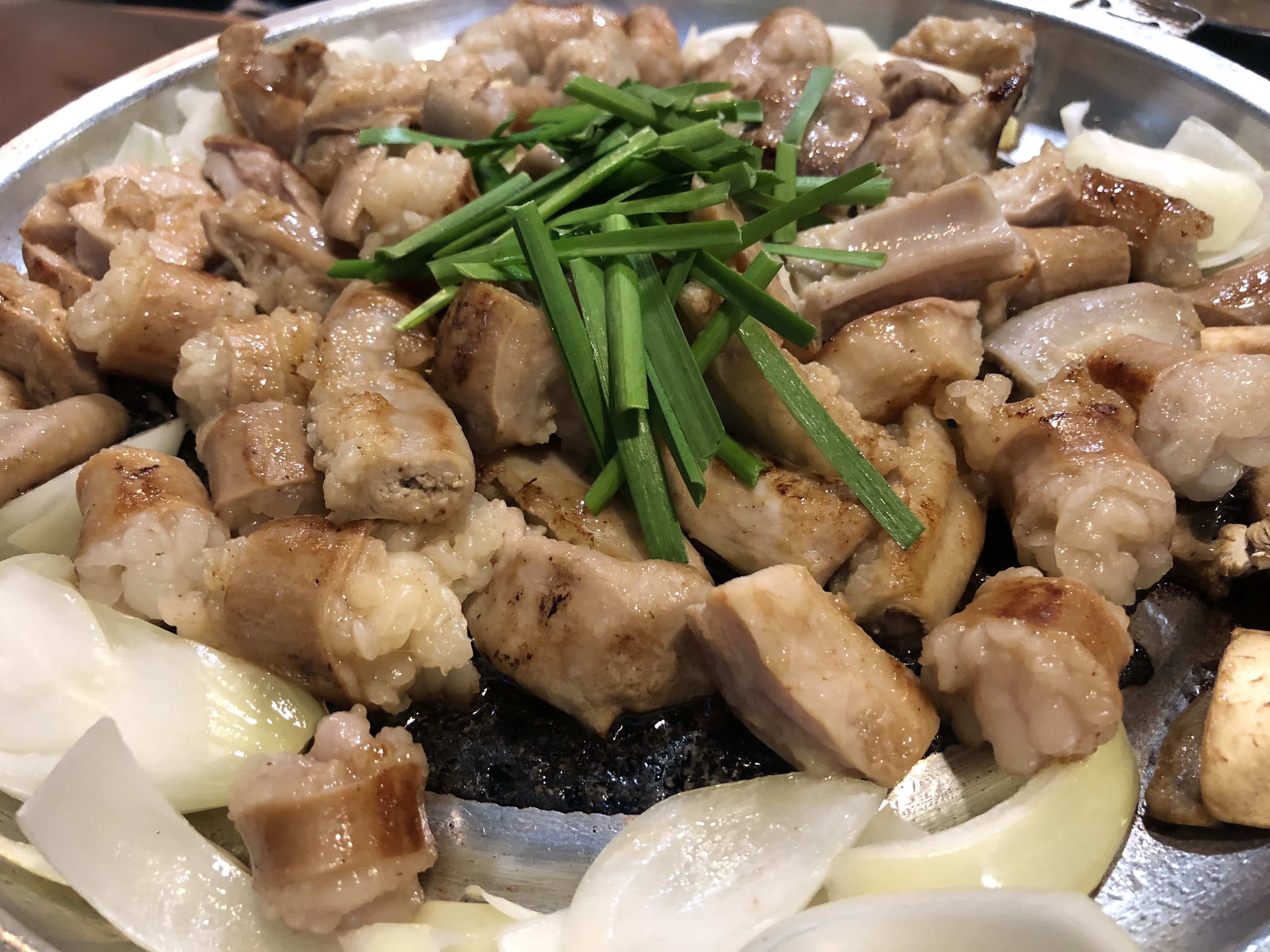 옥수수로 배고픔을 달래다보면, 이렇게 먹음직스러운 곱창 구이가 나온다.