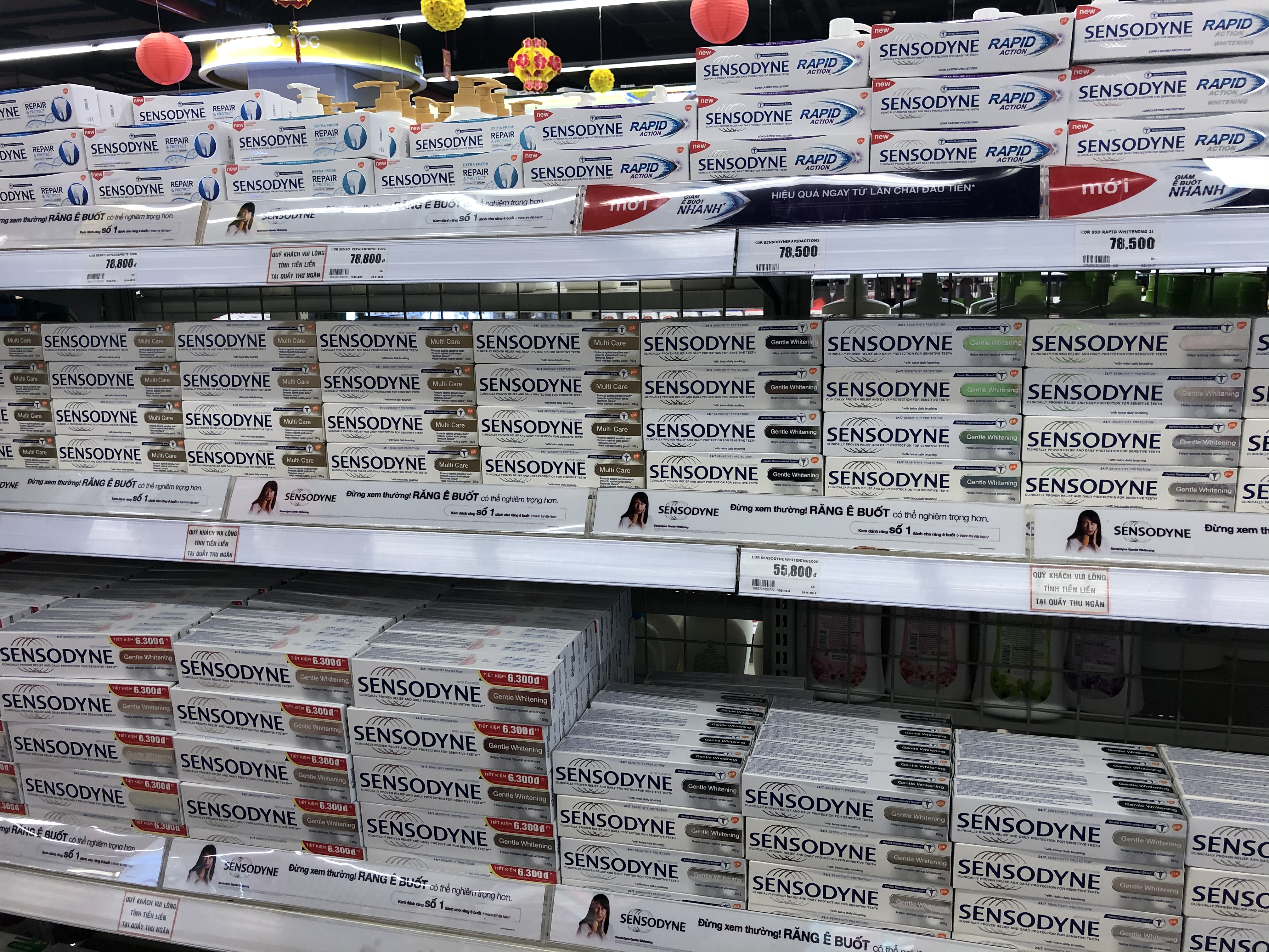 베트남에서는 이 센소다인 치약이 하나에 약 55000동 정도 한다. (한화 약 2500원) 호주에서 10불 넘게 파는 가격을 생각하면 캐리어를 꽉꽉 채워서 가야겠지만, 써본 적은 없었기에 약 10개 정도만 구매했다. (더 살걸..)