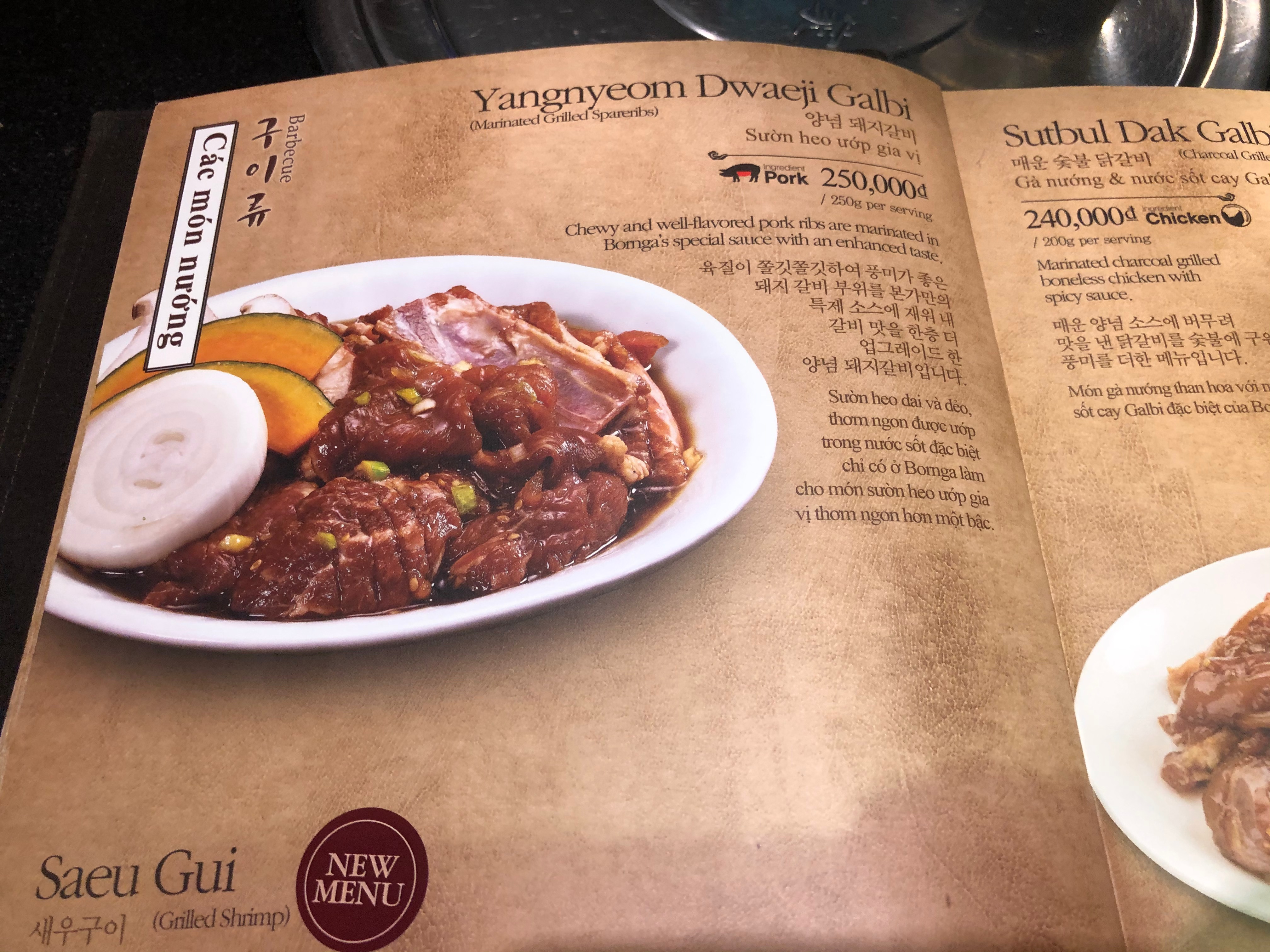 250g 이 1인분인데, 가격은 25만동이다. 한화로는 약 12,500원이다.