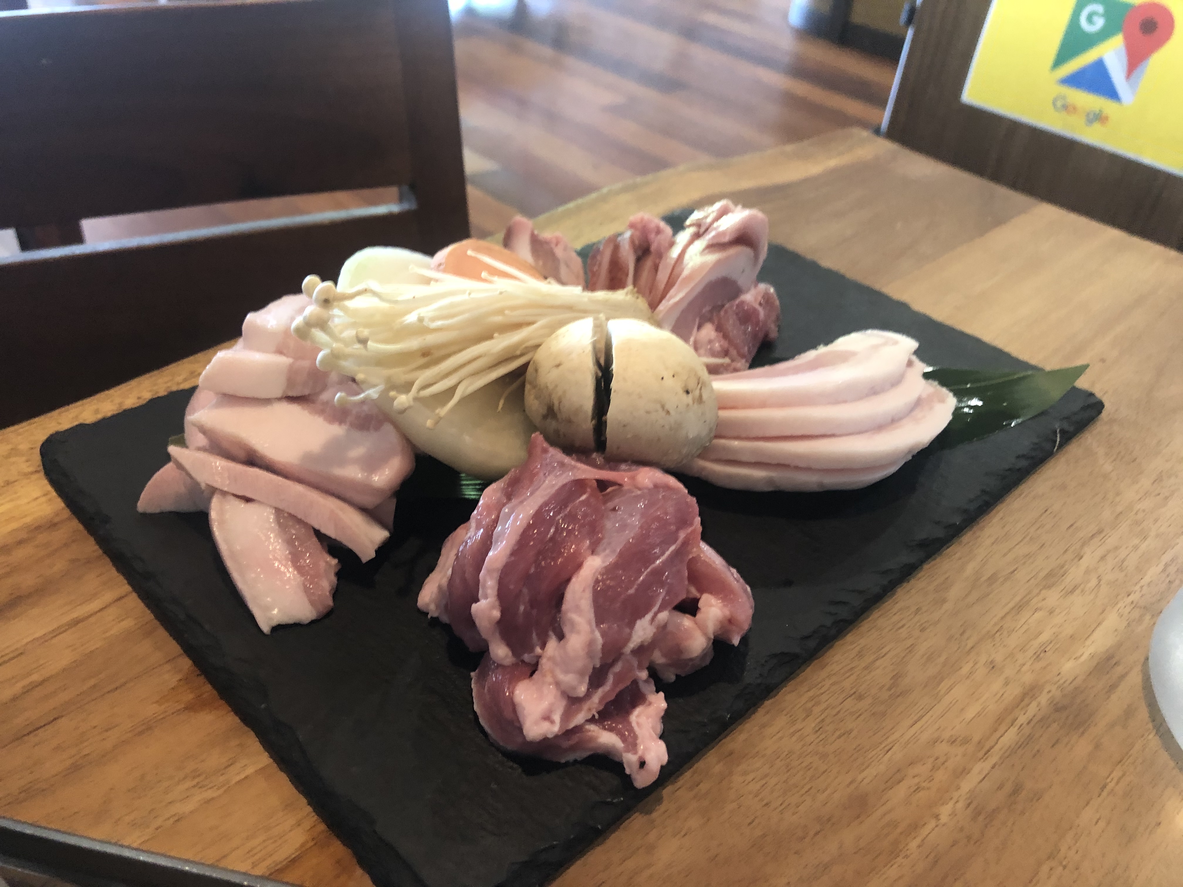 고기 부위 별로 조금씩 나눠져 있고, 버섯과 양파 그리고 호박도 함께 나온다.