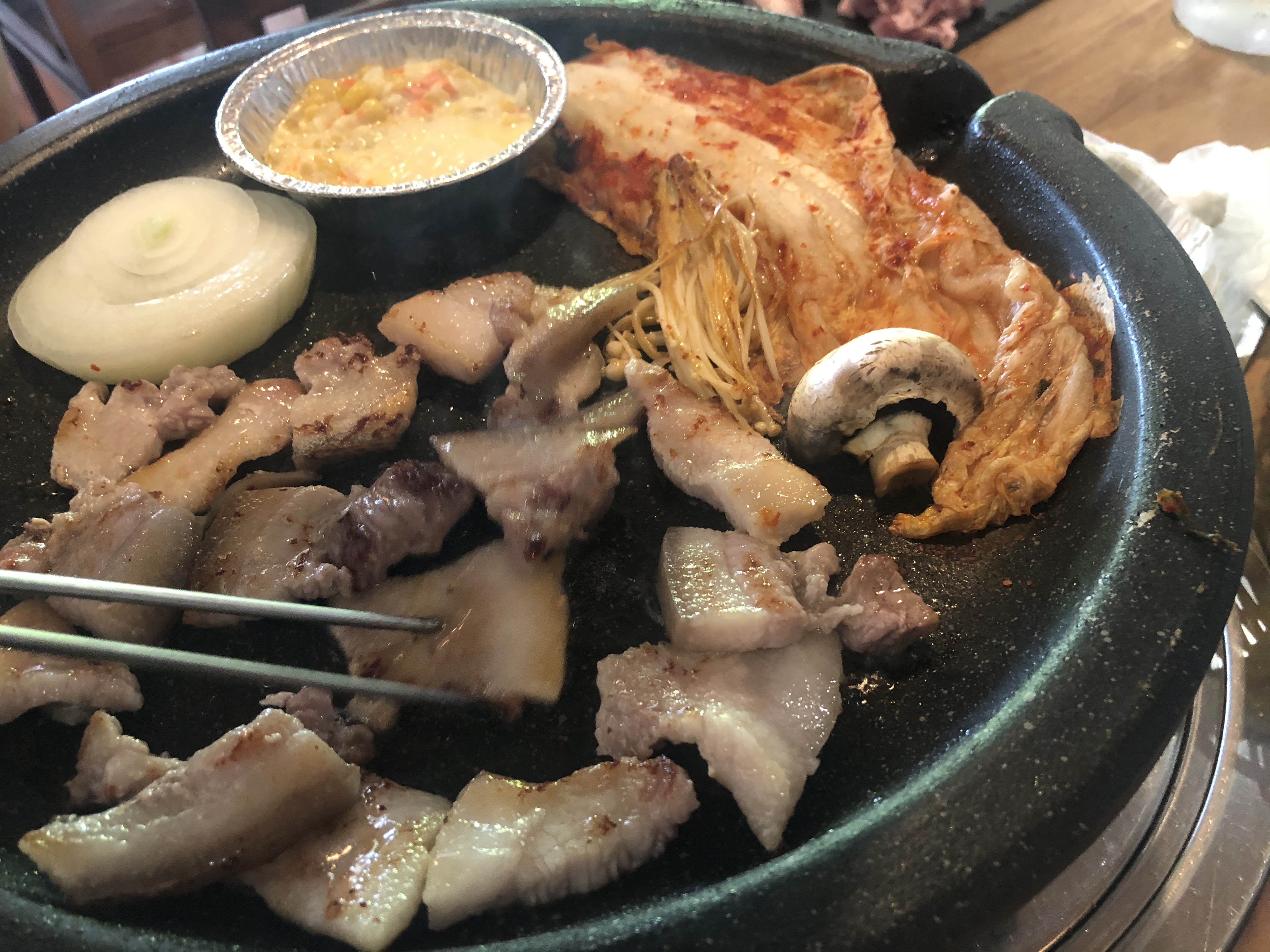 고기 불판에는 신김치도 함께 올려주시는데, 이게 생각보다 아주 신 김치였다.