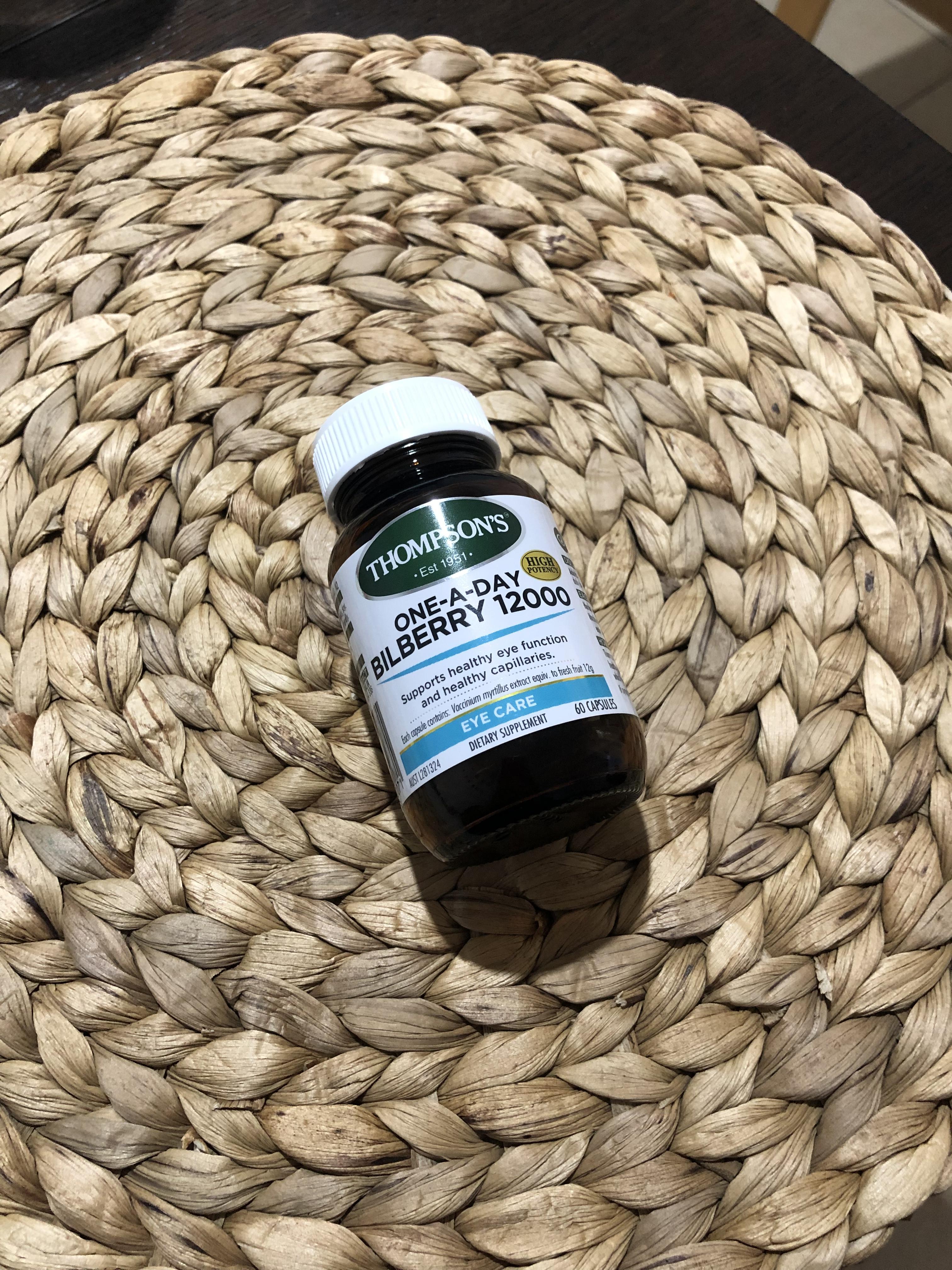 일단 눈이 건조함이 많이 느껴지고 하루종일 컴퓨터를 보는 직업이라 눈을 보호하기 위해 눈에 좋다는 영양제를 구입했다. 톰슨 브랜드에서 나온 것으로 빌베리 12000 이다.