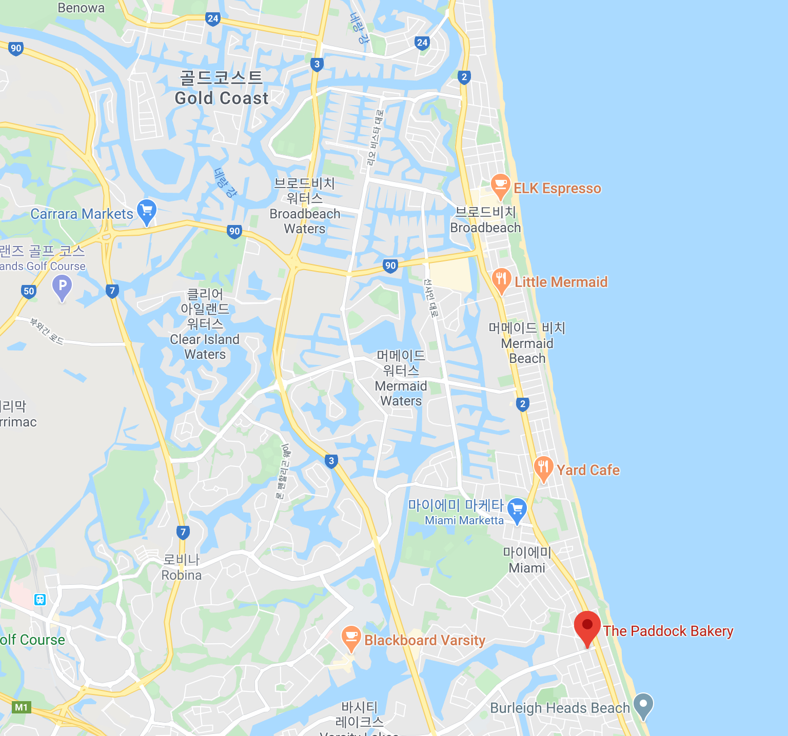 패독 베이커리는 메인 골드코스트보다 조금 더 아래쪽에 위치해 있다.