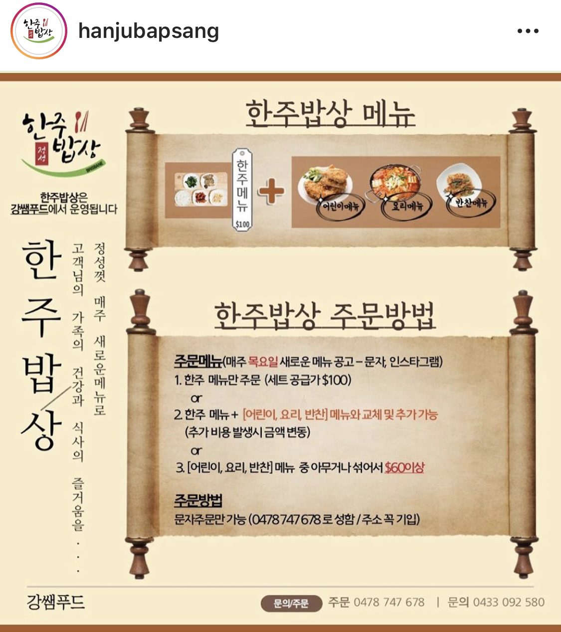 (6) 한주 밥상 : 호주 브리즈번 한국 반찬 배달 서비스