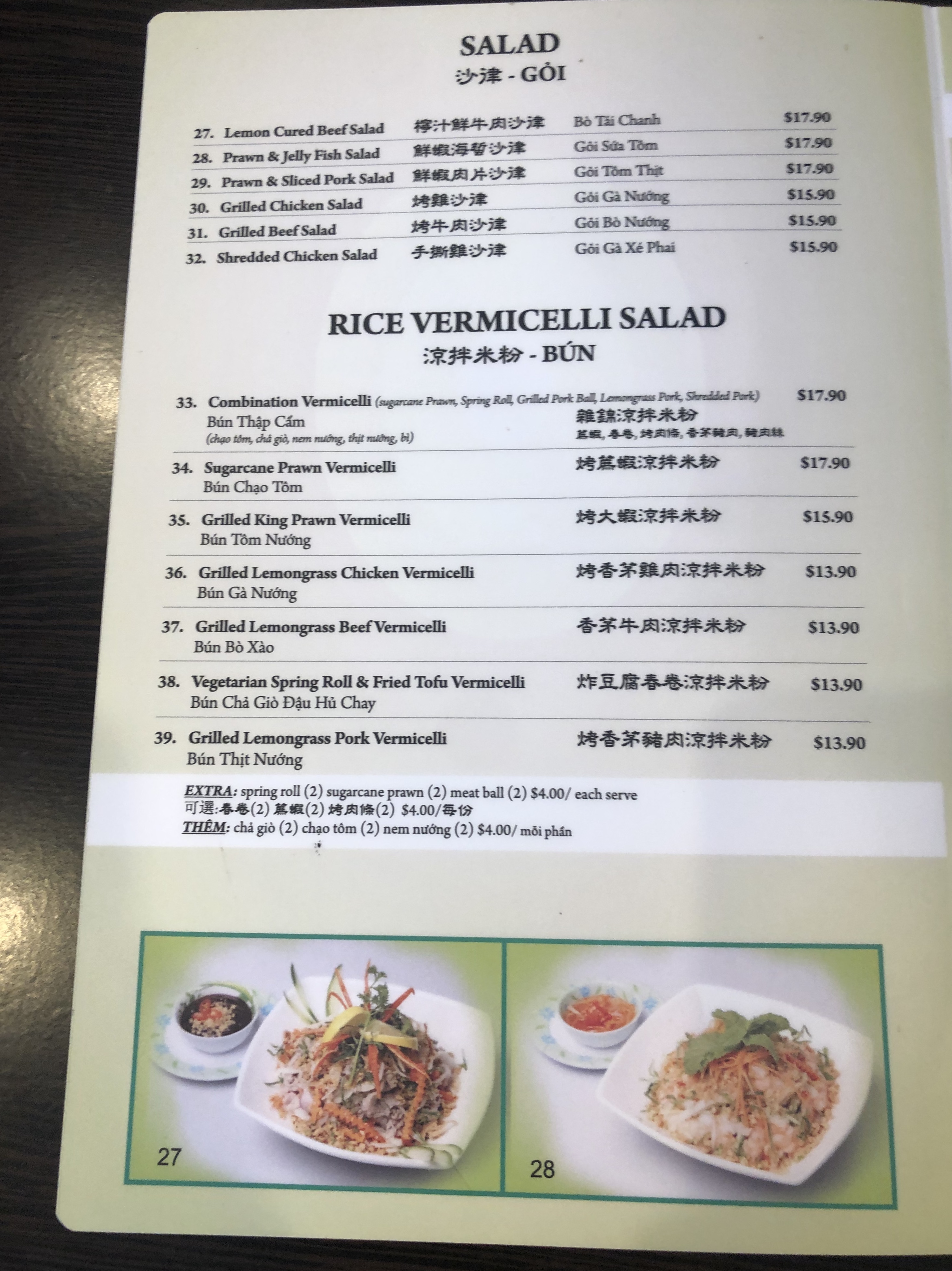 참고로 23번의 Rare Beef (레어 비프) 는 별로 추천하지 않는다. 따뜻한 국물이라 금방 익을 거라 기대하고 부들부들 먹으려고 시켰는데.. 생각보다 안익어서 당황했던 기억이 있다.