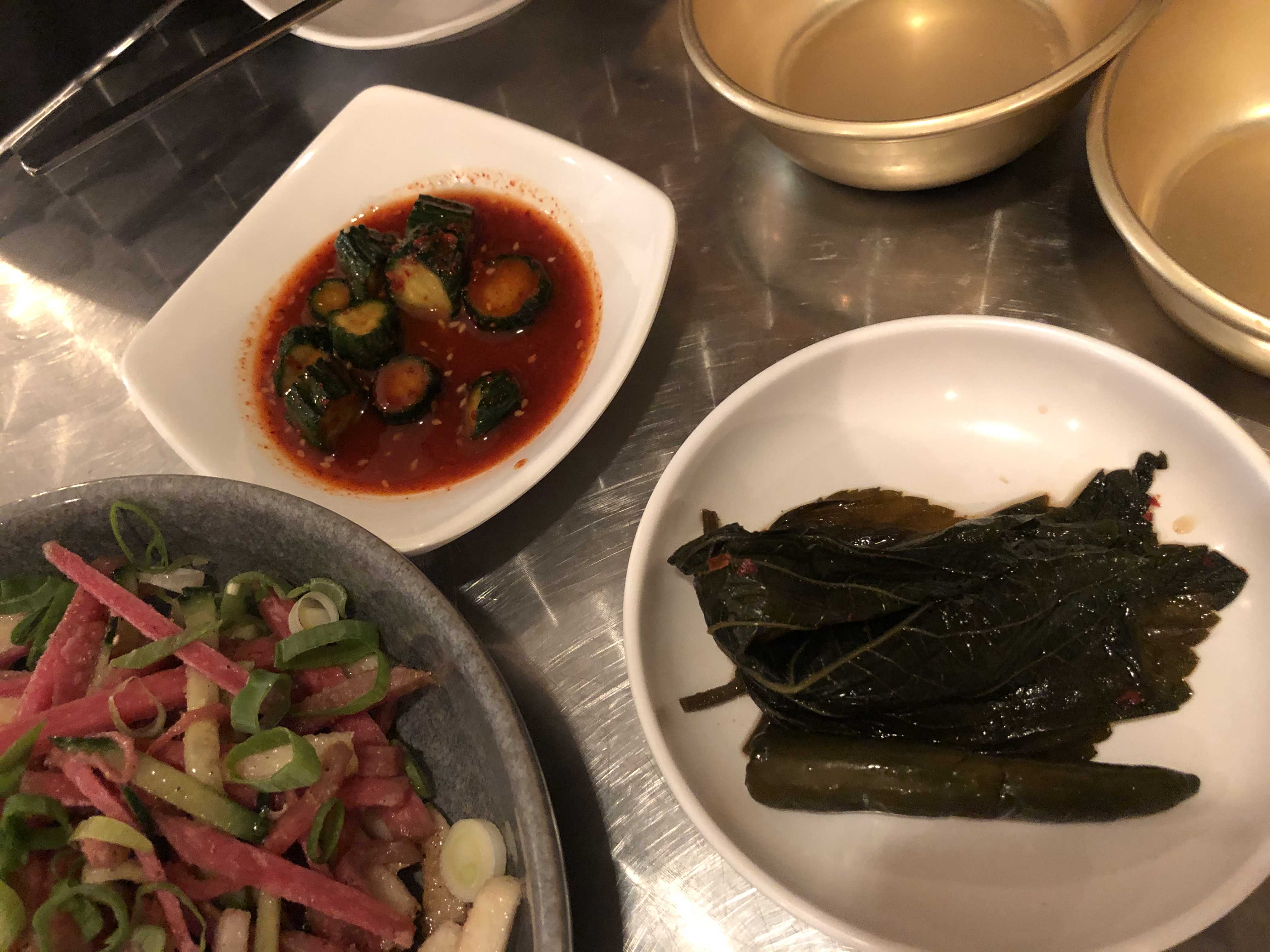 곱창의 느끼함을 꽉 잡아줄 깻잎 장아찌와 오이 김치!