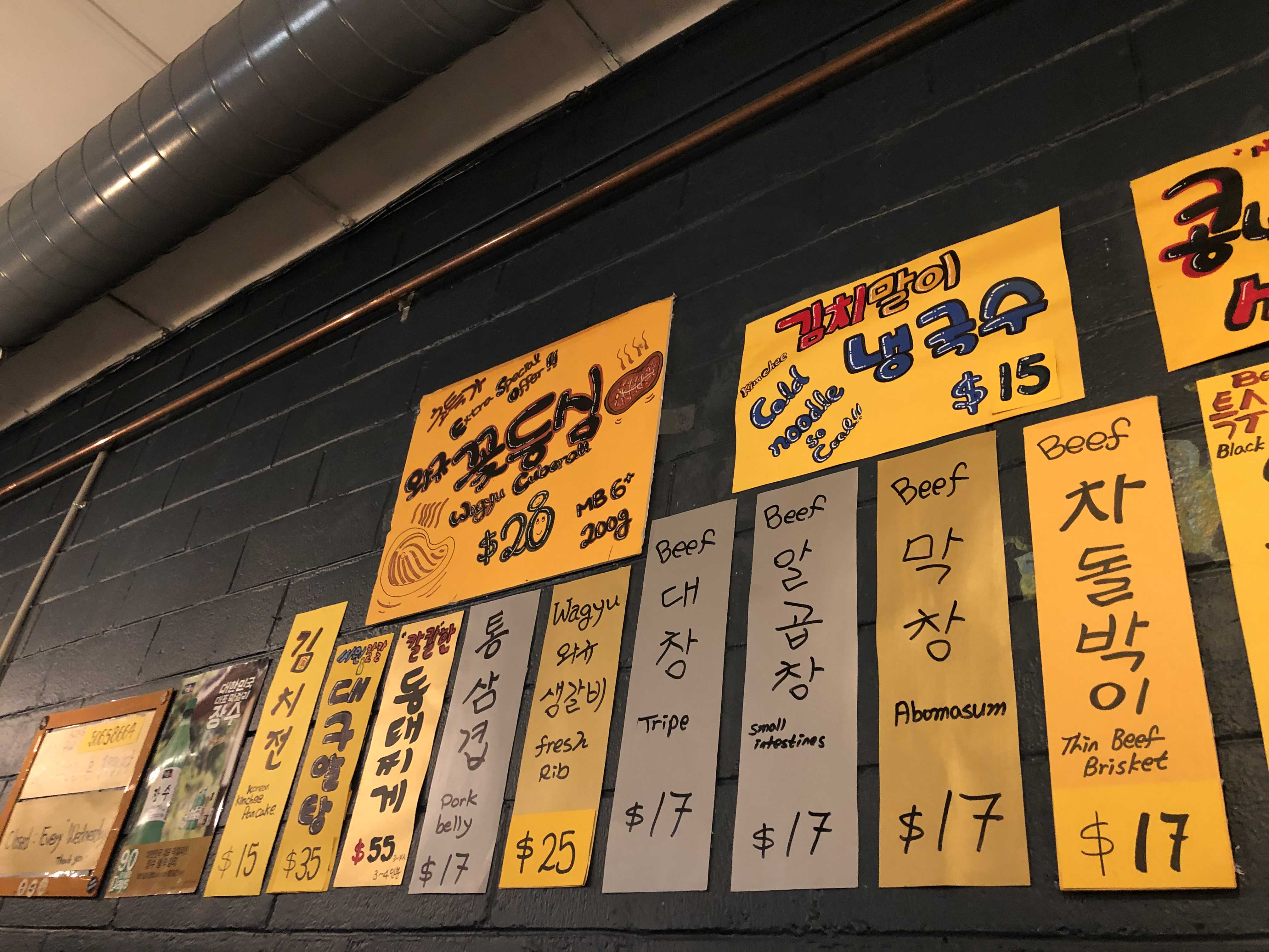 요즘은 이렇게 메뉴들을 붙여놓는게 또 트렌드인 것 같다. 이게 포장마차나 한국 레트로 감성을 일깨우는 인테리어 인 것 같다.
