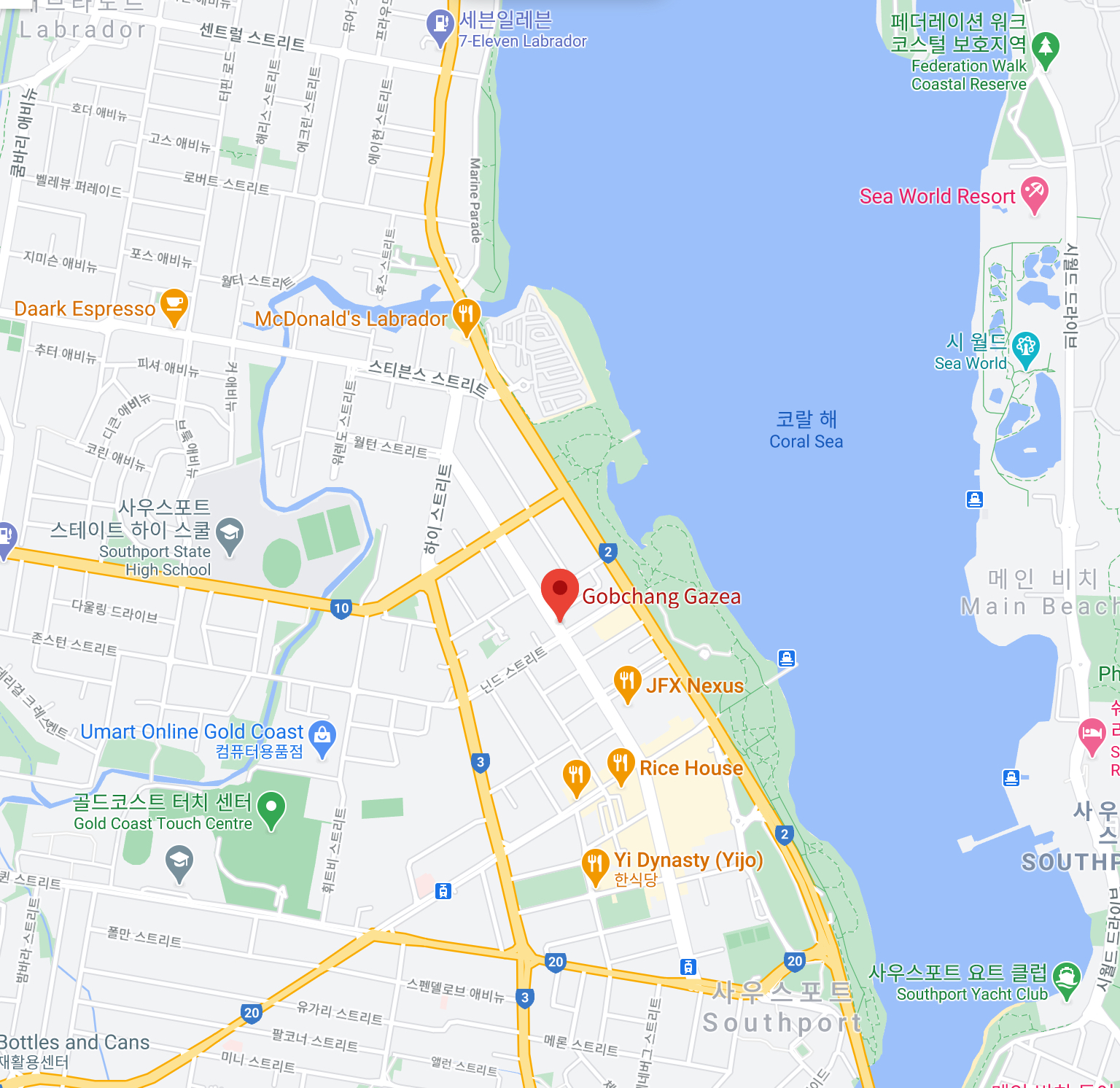 흔히 우리가 다 아는 대박집 등 유명한 골드코스트 한식집들이 있는 곳에 같이 있다.