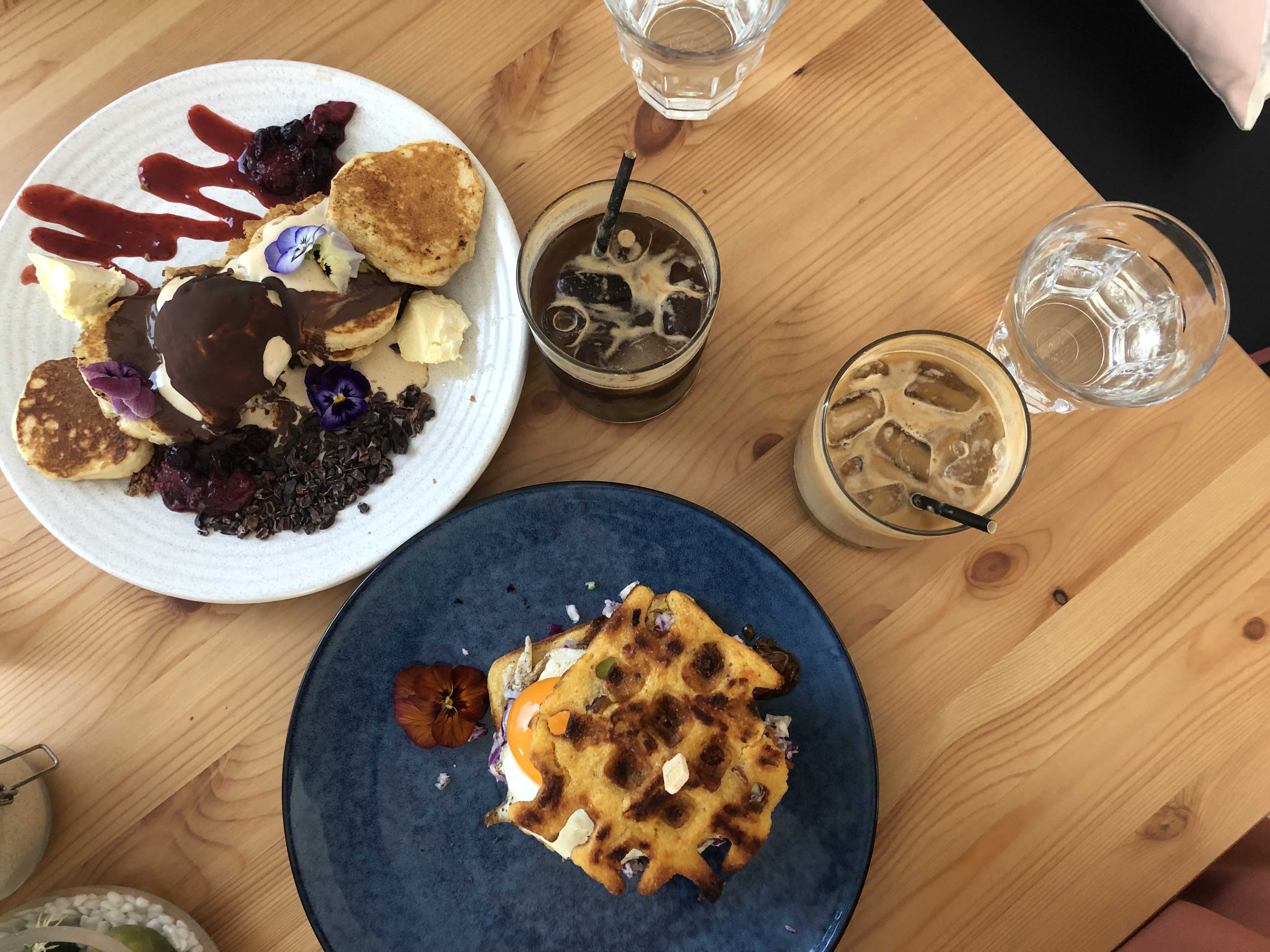 사진에 있는 메뉴들 소개를 하자면, 위에 것은 NOT TELLING YOU TWICE 라는 메뉴이다. 하우스메이드 누텔라와 아이스크림, 그리고 팬케이크 조합이 달콤해서 만족스러웠던 메뉴이다. 가격은 18불!