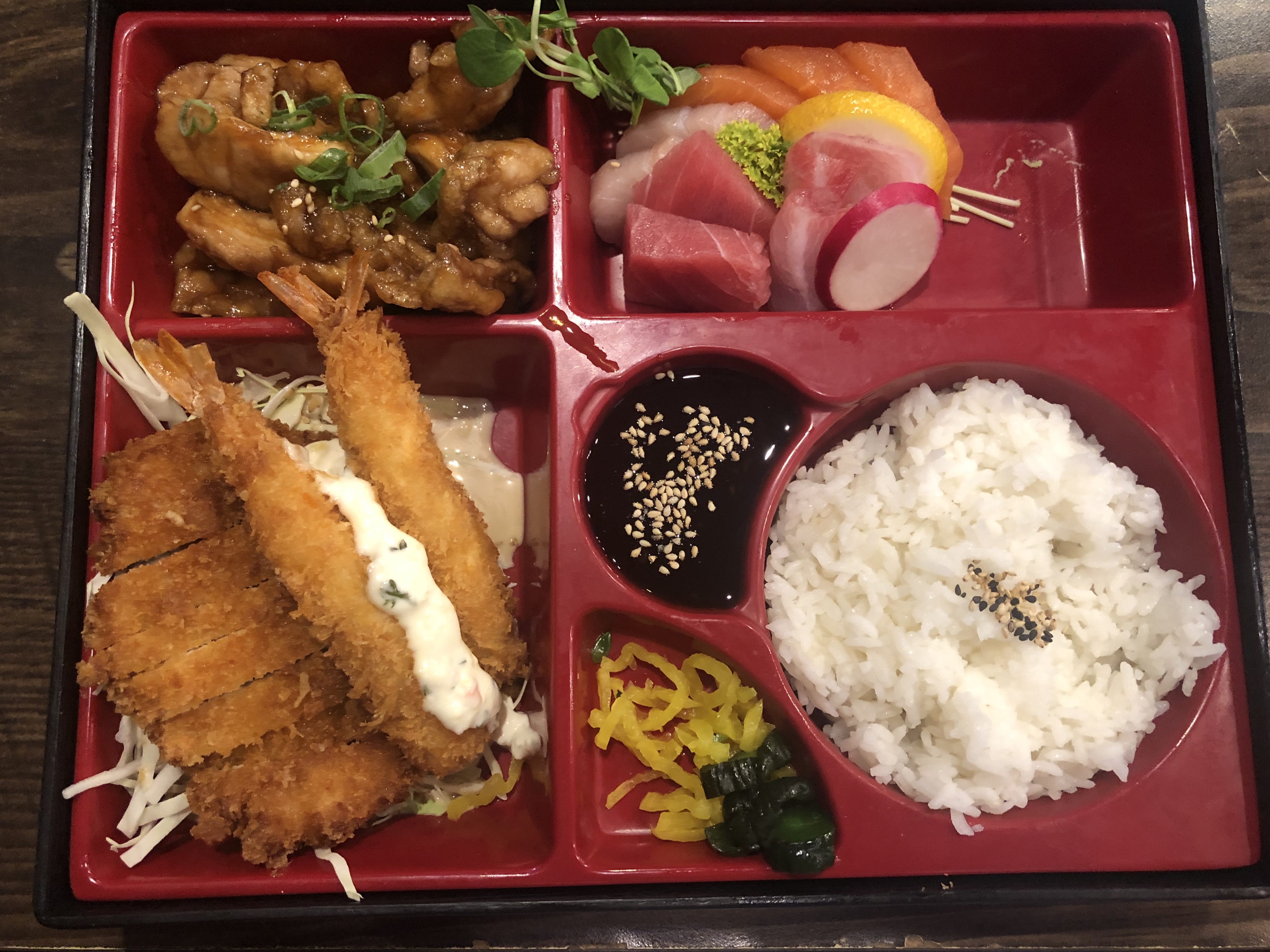 돈까스가 같이 나오는 벤또인데 ... 입에서 살살 녹는 사시미 한 점 먹고 바삭한 돈까스 한 입 먹는 조합이 너무 굿굿.