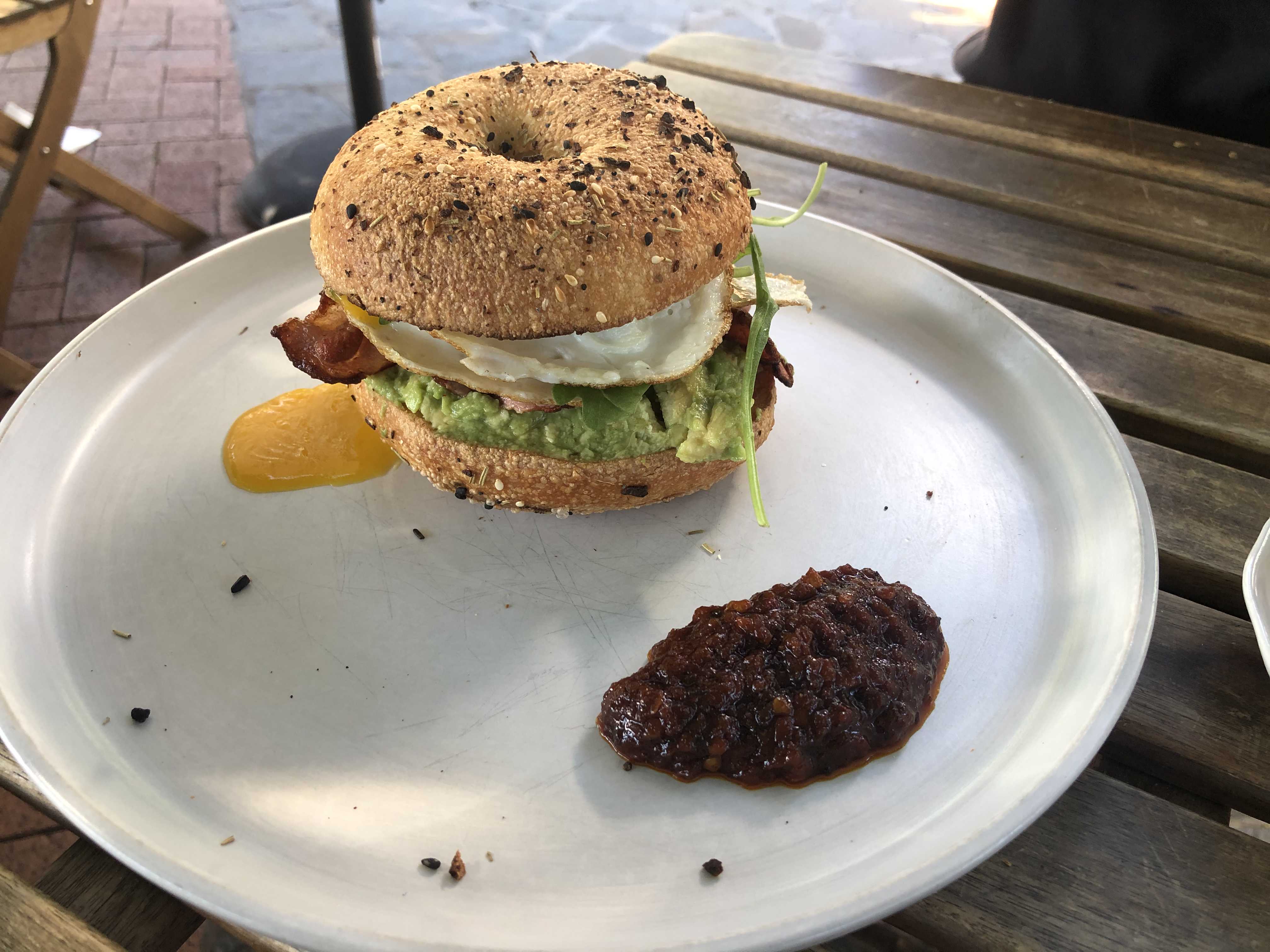 사실 처음에는 터키쉬 에그나 모닝 아프터 같은 걸 먹을까 했는데... 진열된 빵에서 베이글을 보니까 베이글을 참을 수 없게 되어서 베이글을 주문했다.