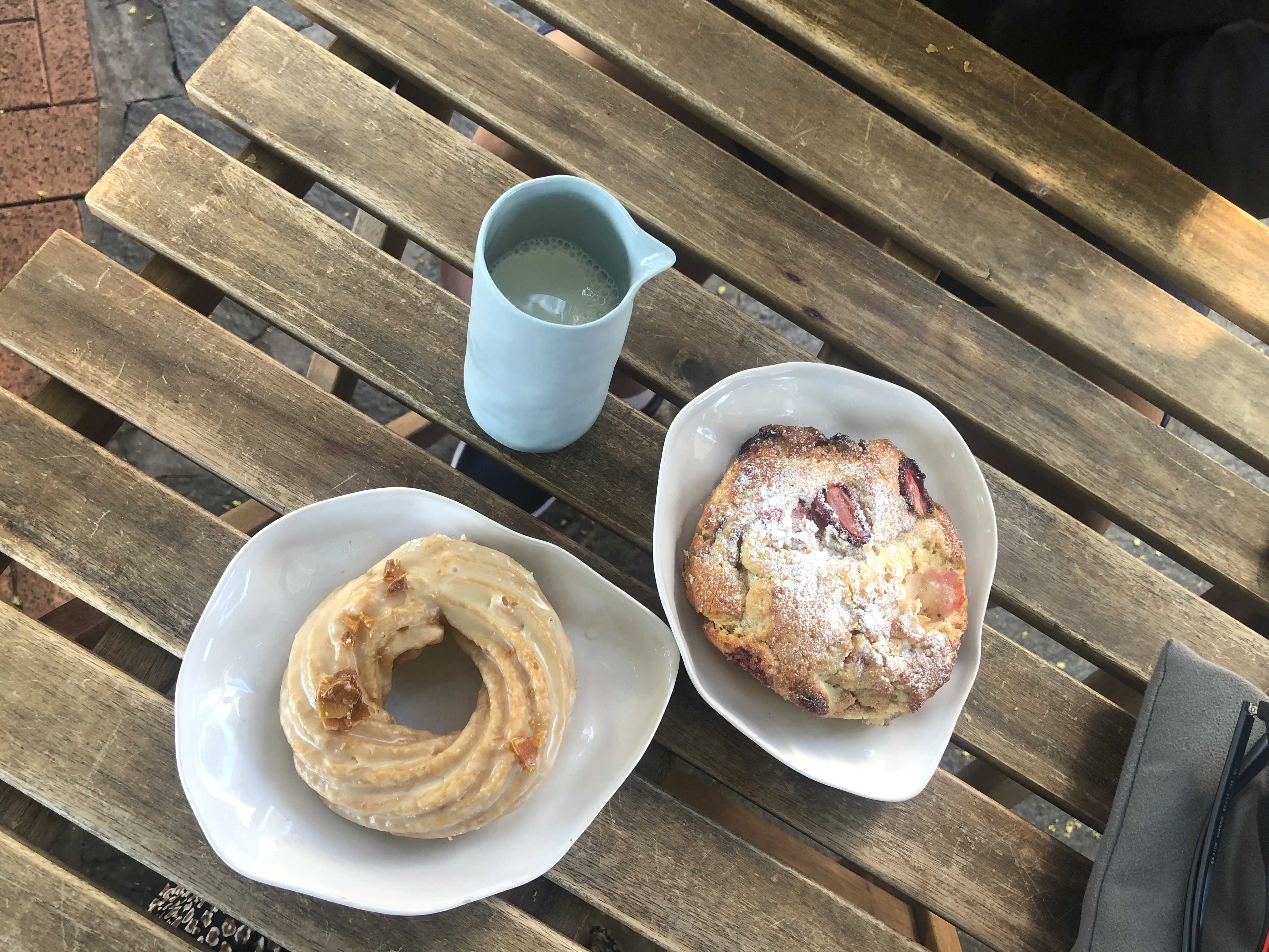 오른쪽에 있는 빵은 스트로베리 쿠키라는 이름이다. 줄 서서 기다릴 때 앞에 있는 두 사람이 전부 사길래 뭔가 있구나 해서 주문했는데 이것도 역시 성공적.