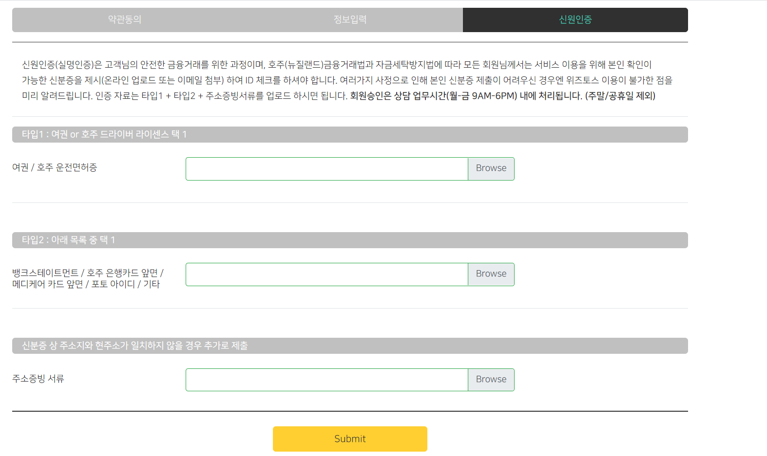 타입 3는 주소증빙 서류인데 주소지가 일치하지 않을 경우 추가로 제출하라고 해서 스킵하고 넘어갔다.