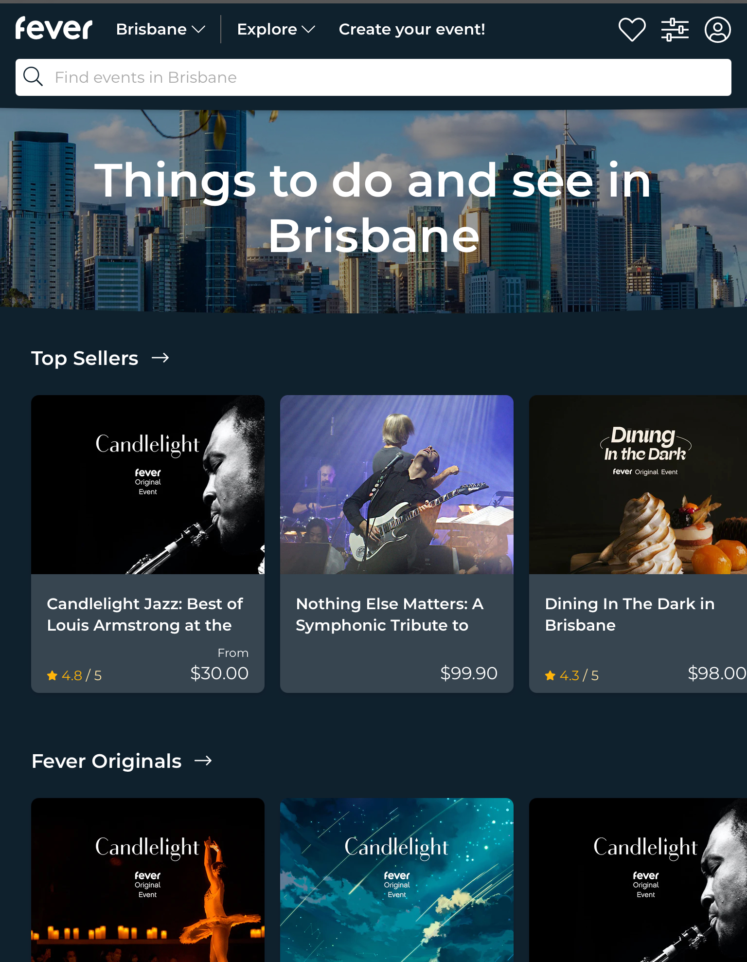 인스타그램이 그나마 좋은 통로가 되긴 하지만 ... 조금 아쉬운 면이 있었는데 최근 피버업이라는 글로벌 사이트를 찾았다. 어느 나라에서나 사용할 수 있는 것 같은데 브리즈번으로 설정해놓으면 이렇게 현재 하고 있는 공연들을 소개해준다. 앞 쪽에 나와있는 캔들 라이트 공연은 최근 많이 하고 있는 공연 중 하나이다. 공연, 문화생활 접하기가 힘든 외국에서 꽤 좋은 사이트라고 생각해서 강추한다!!!