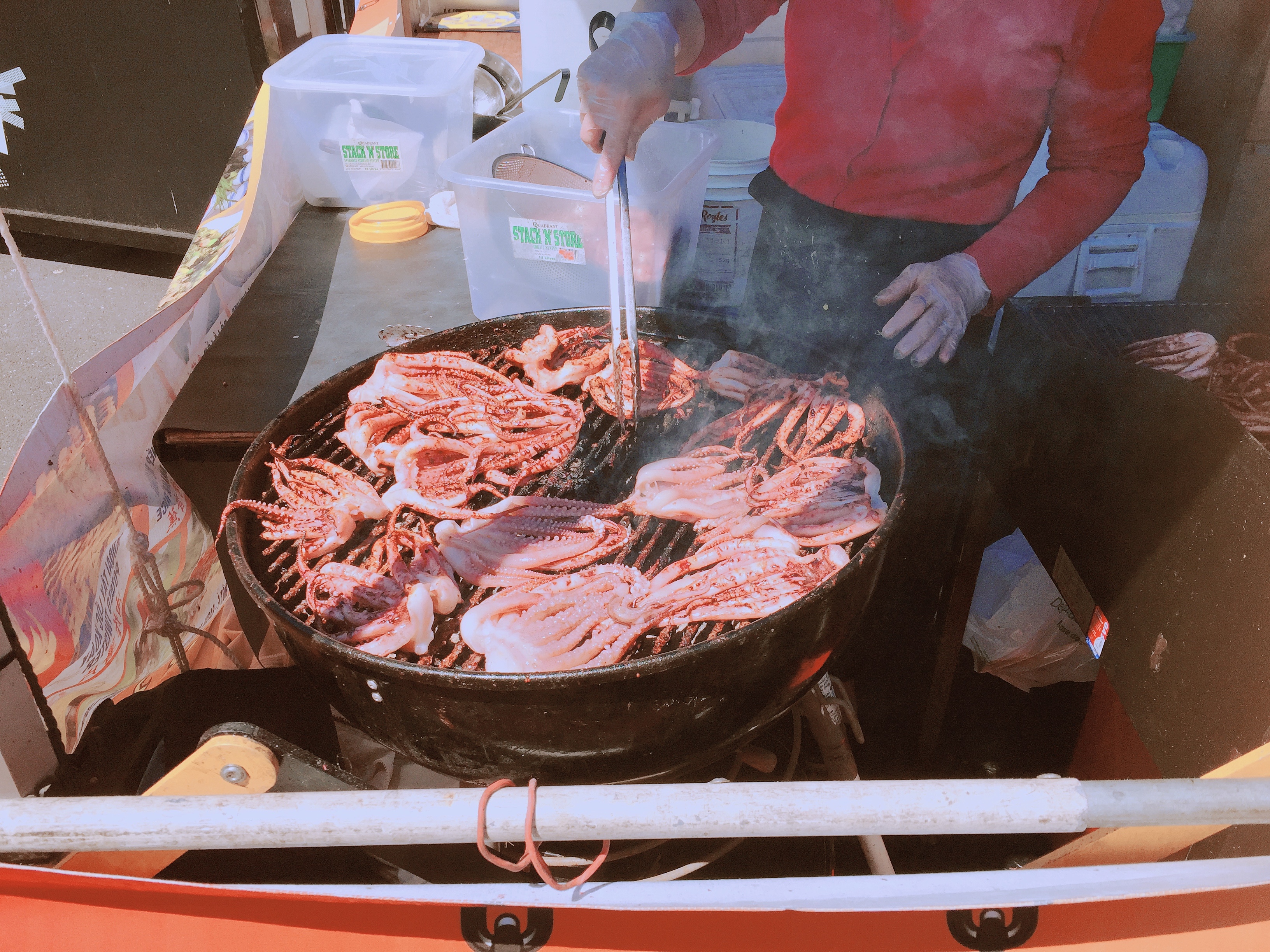 우선 들어가자마자 베트남? 사람들이 공연을 하고 있었는데 공연하는 곳 주위로 이렇게 바로 오징어를 파는 곳이 있어서 사먹었다. 호주에서 이런 동남아시아를 느낄 수 있다니 정말 신기했다.