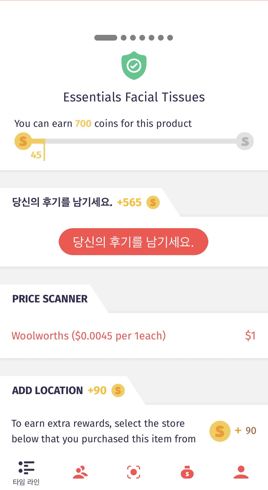 스캔하면 가장 최저가인 곳이 어딘지 얼마인지에 대한 정보를 제공한다.