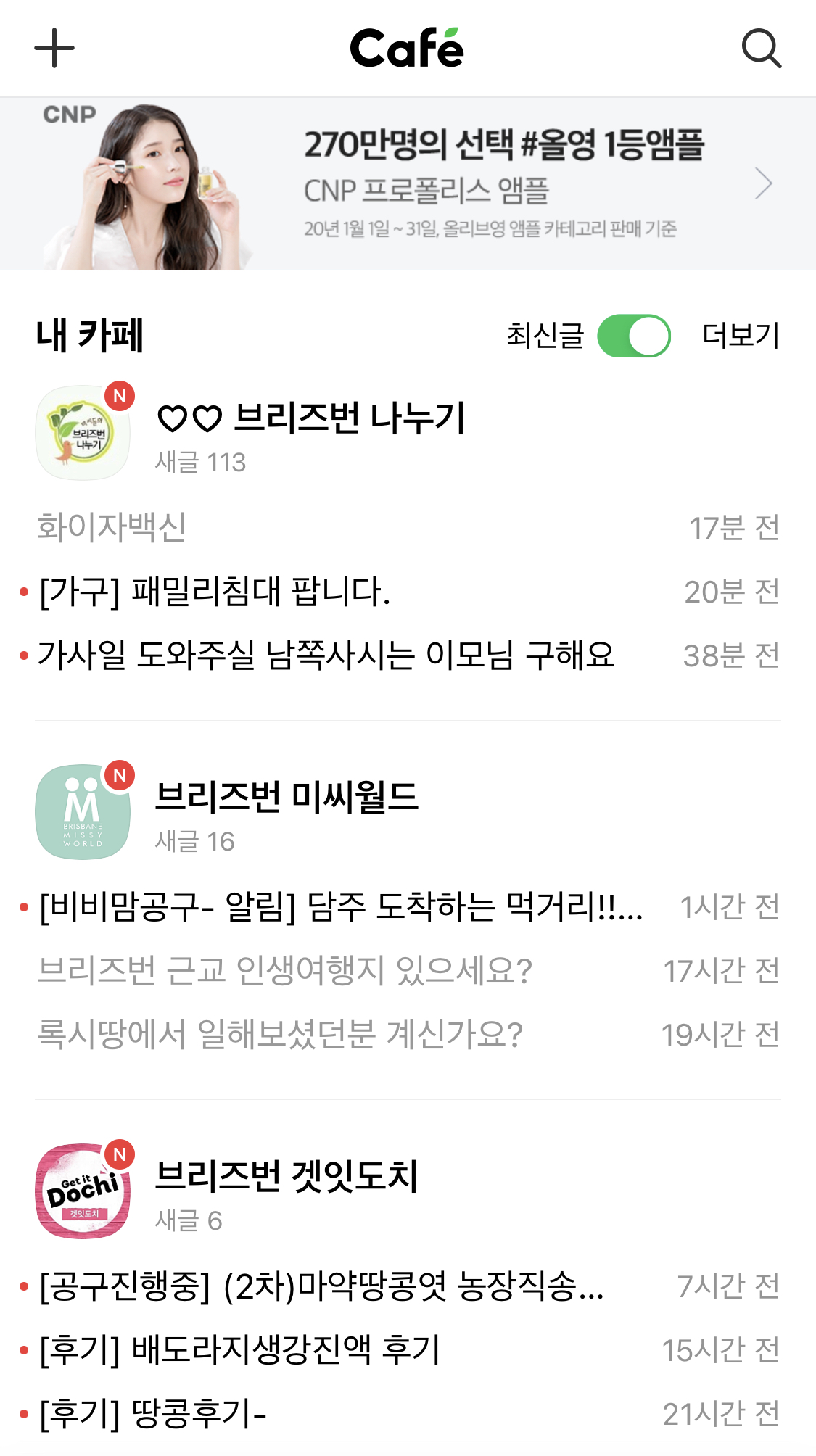 첫번째 브리즈번 나누기 카페와 미씨월드 모두 서로 정보 공유하는 커뮤니티인 동시에 공동구매를 진행하고 있는 카페이다. 마지막 겟잇도치는 오로지 공동구매만 이뤄지고 있는 카페이다!