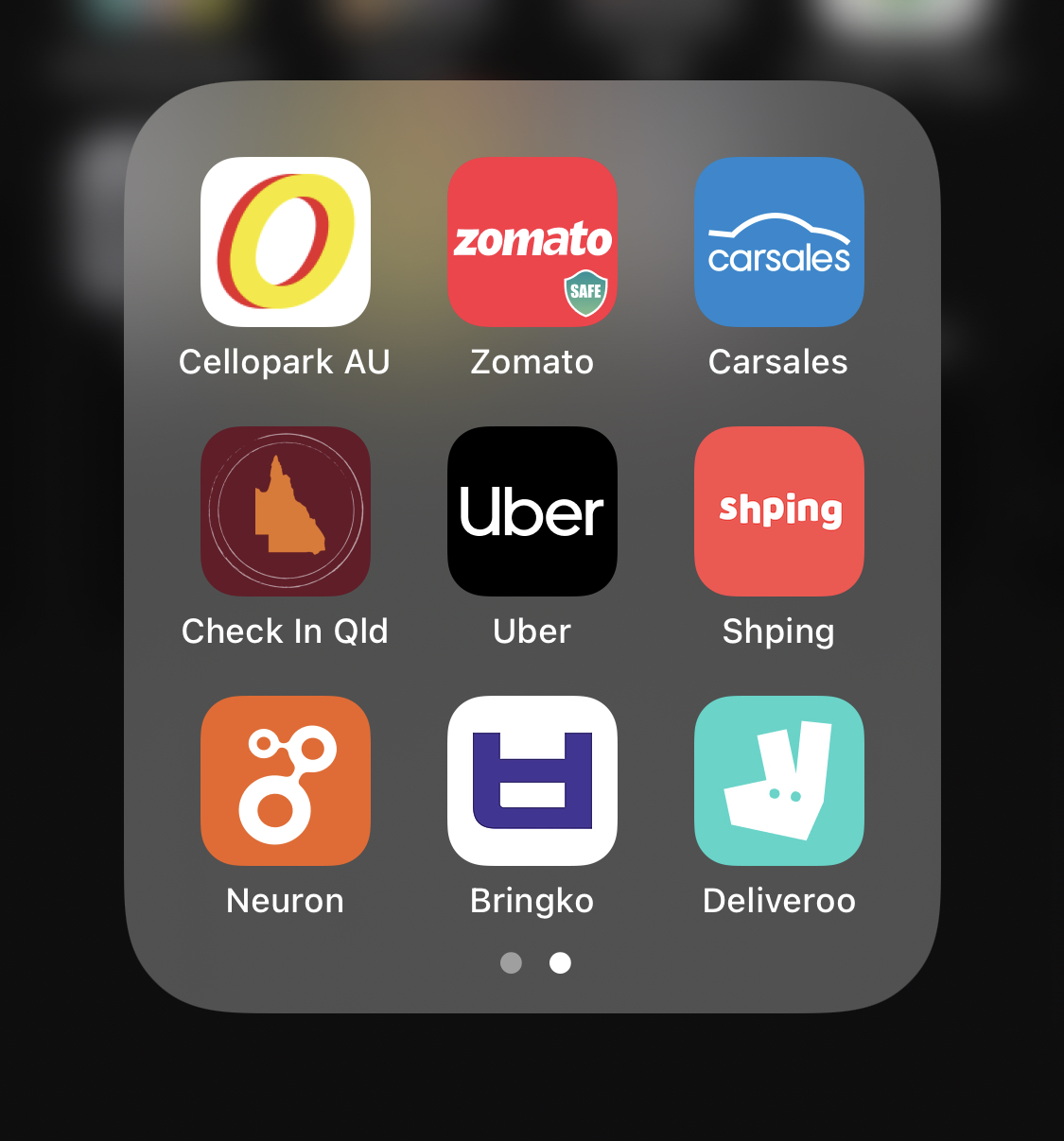 차례차례 Cellopark, zomato, carsales, check in qld, uber, shiping, neuorn, bringko, deliveroo 이다.