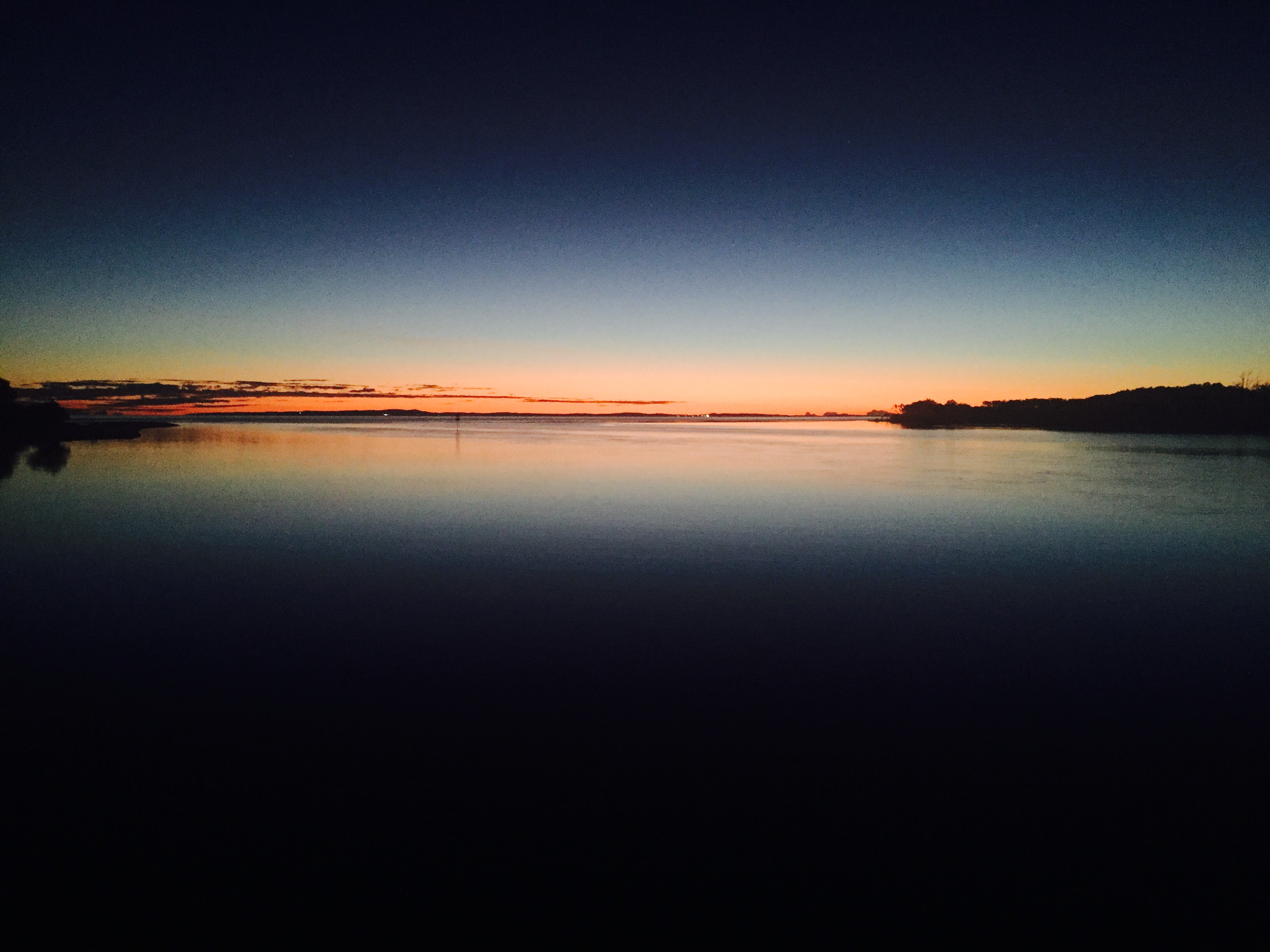 사진에 있는 배 한 척이 태양 한참 뜰 때 물길을 만들면서 지나갔었다.