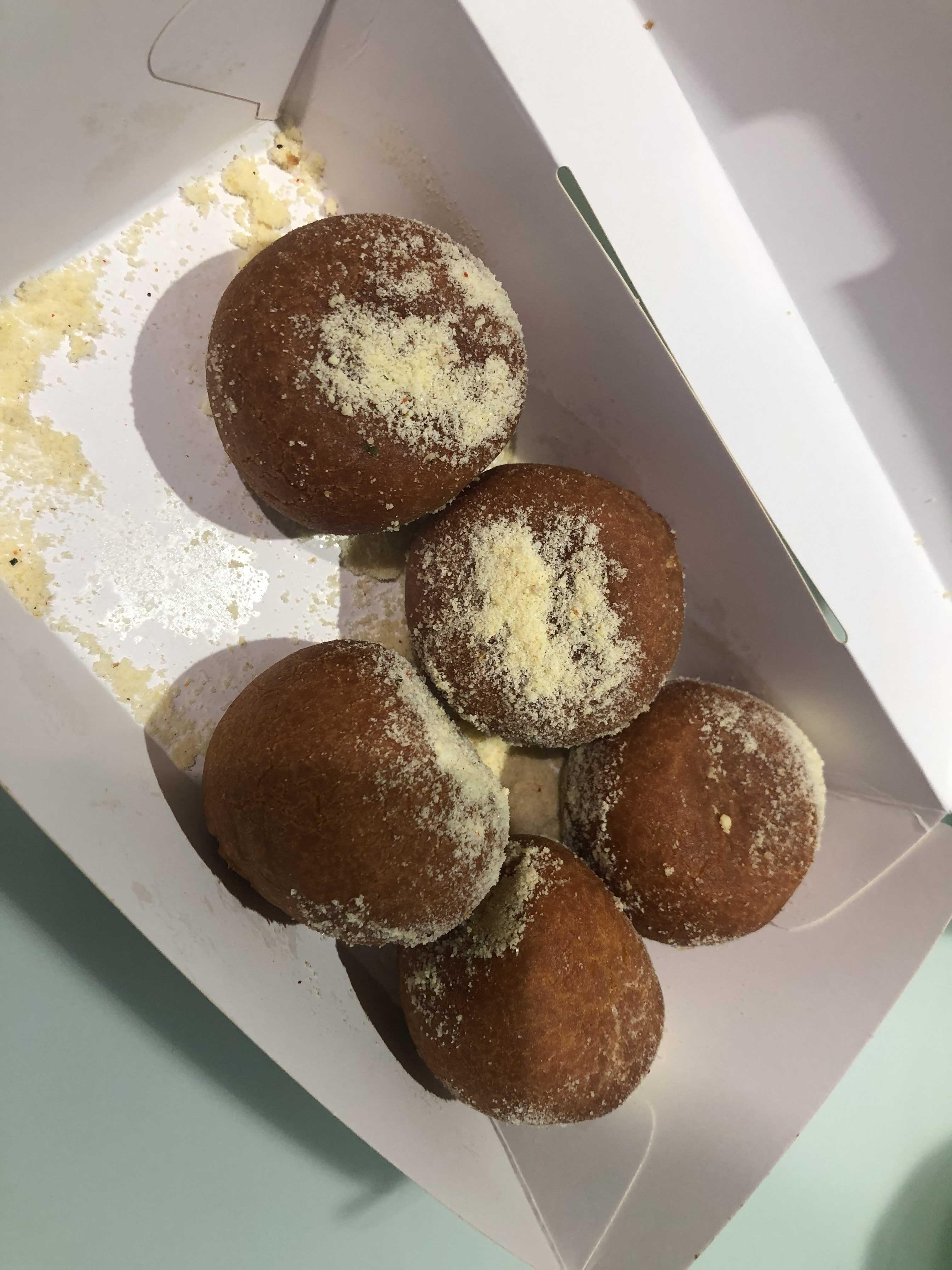 쫀득한 볼 안에 치즈가 가득하게 차있어서 정말 맛있다!!! 위에 뿌려진 가루는 치즈 가루인데 요게 또 짭짤한 맛을 더해줘서 더욱 매력적이다!