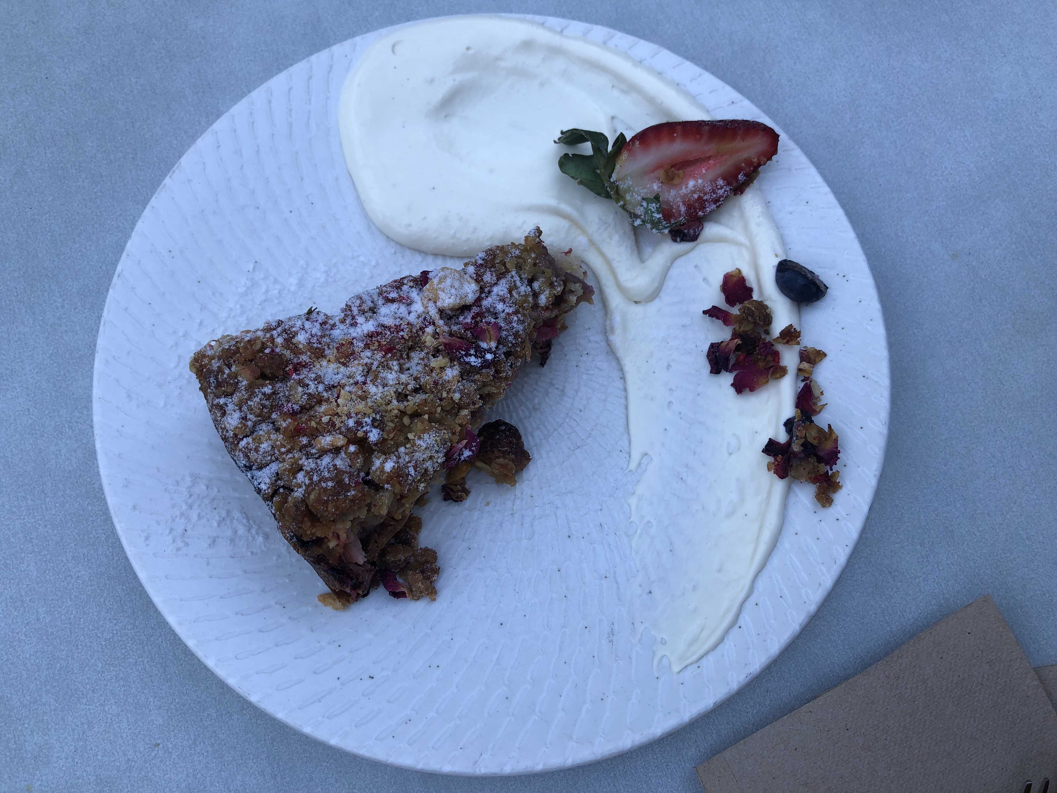대신 생크림은 아주 맛있다! 케이크는 진열대에서 직접 보고 시킨 것인데 베리 크럼블이라는 케이크이다.
