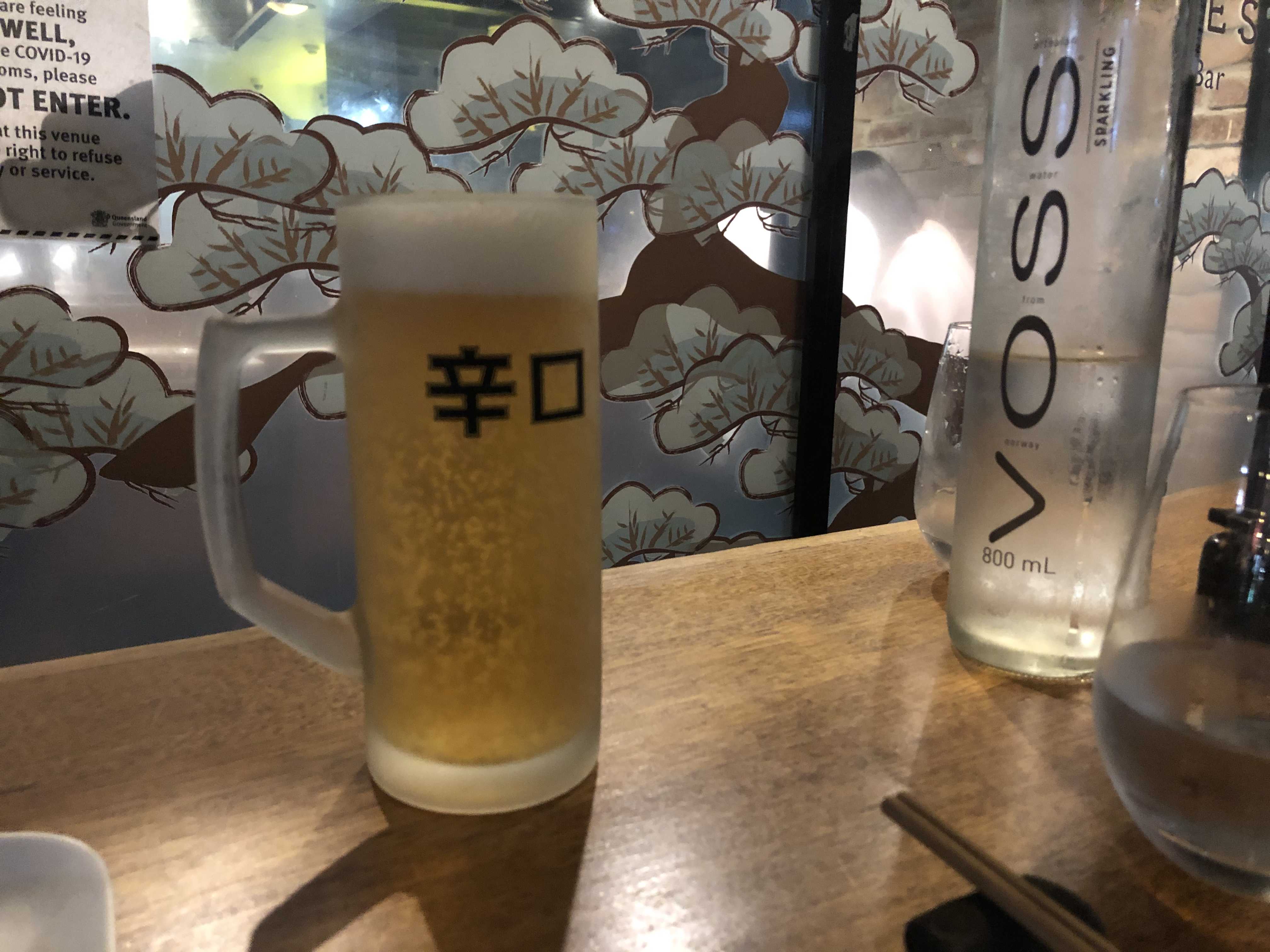 저녁을 살짝 먹고 온 거라 스파클링 워터도 하나 주문했다. 처음에 일반 워터먹을지 스파클링 워터 먹을 지 선택하는 건데 일반 물은 공짜이고.. 스파클링은 돈을 낸다! 여기는 VOSS 스파클링 워터를 줬고 가격은 한 병에 9불!