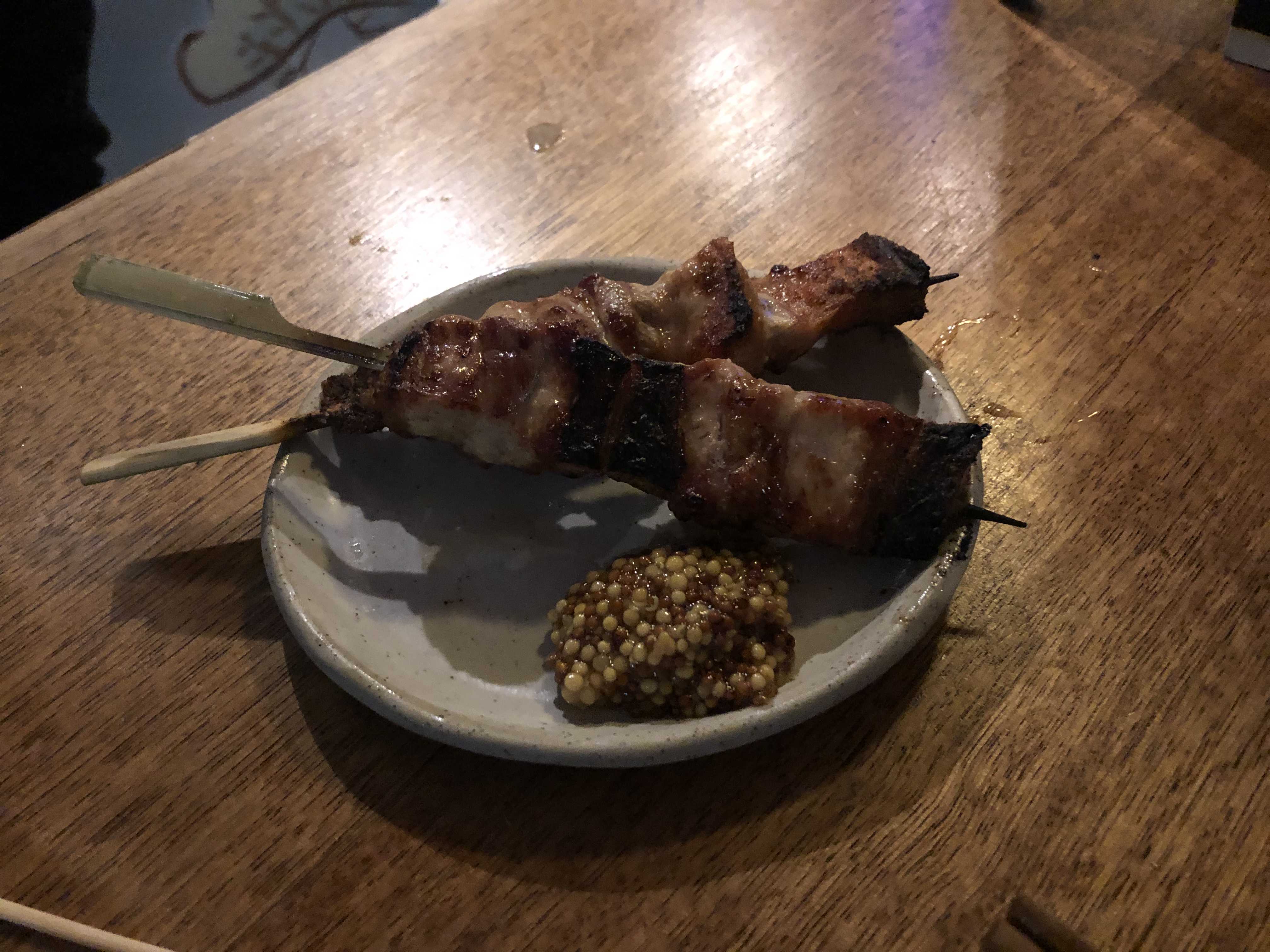 저녁에도 돼지고기 요리를 먹어서 이 꼬치를 안 먹으려고 했는데 그냥 가면 섭섭할 것 같아서 이걸 추가로 시켰다.