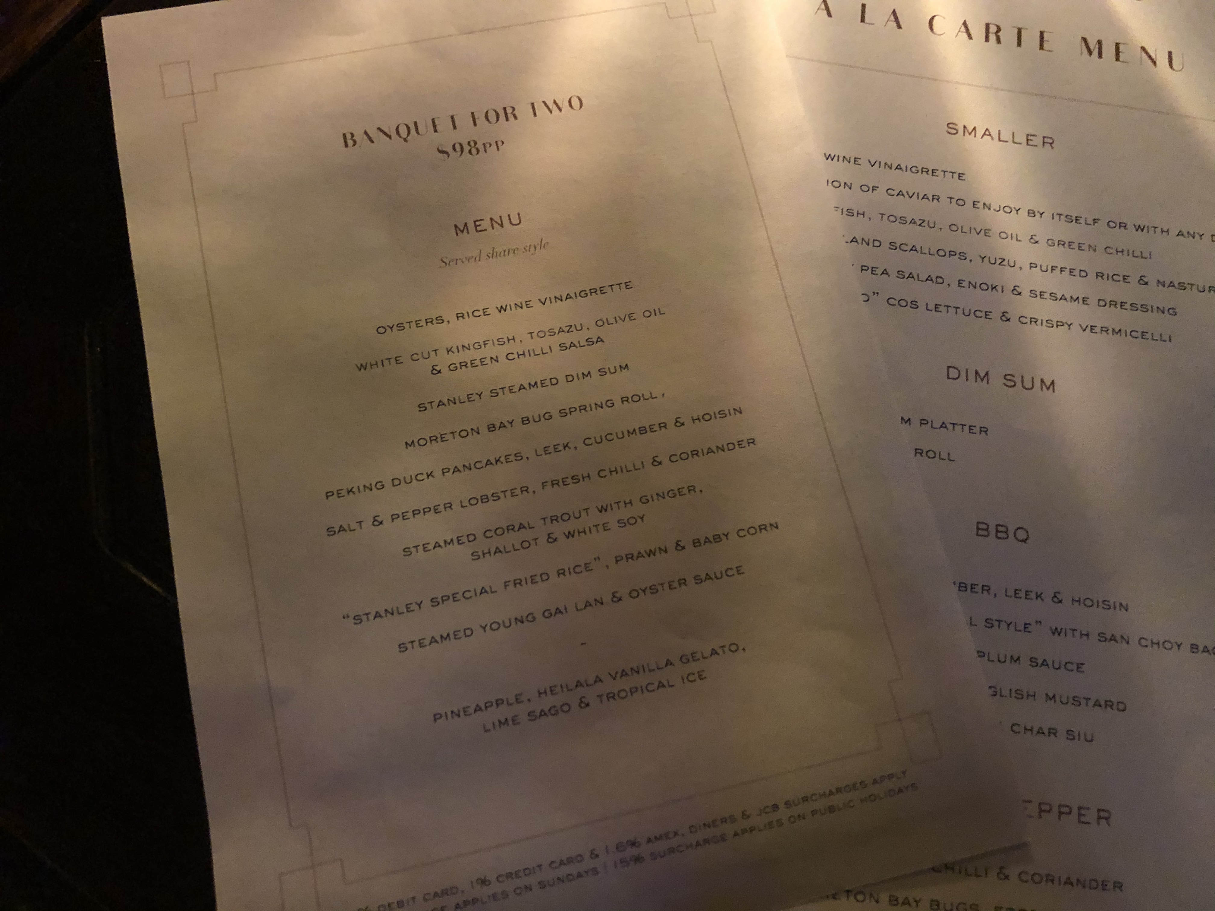 사진에 있는 BANQUET FOR TWO 를 먹었는데 코스요리이다.