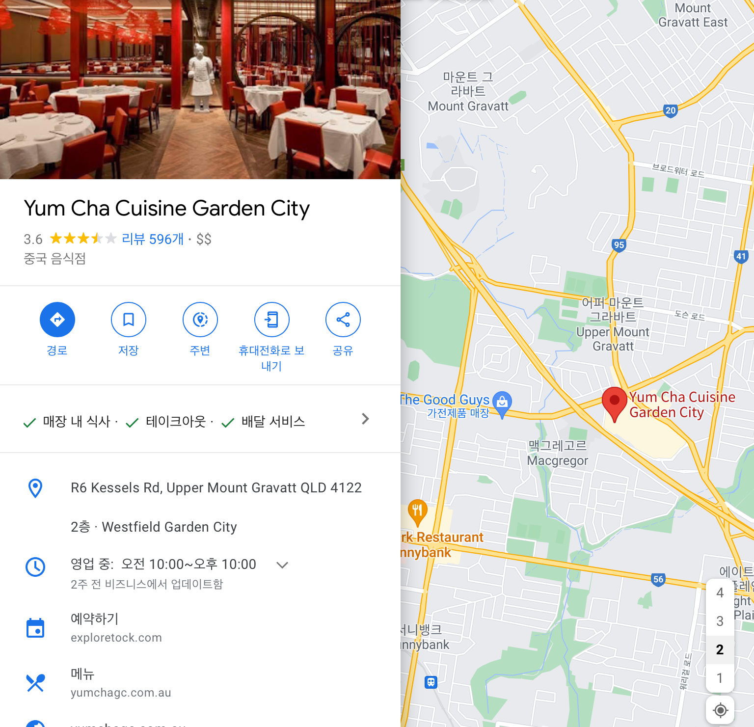 얌차를 파는 곳은 꽤나 많은 편이다. 그 중에서도 가장 쉽고 편리하게 갈 수 있는 곳은 브리즈번 남쪽에 위치한 가든시티에 있는 얌차이다. 많이 대중화되기도 했고 그만큼 맛도 괜찮아서 추천하는 곳이다.