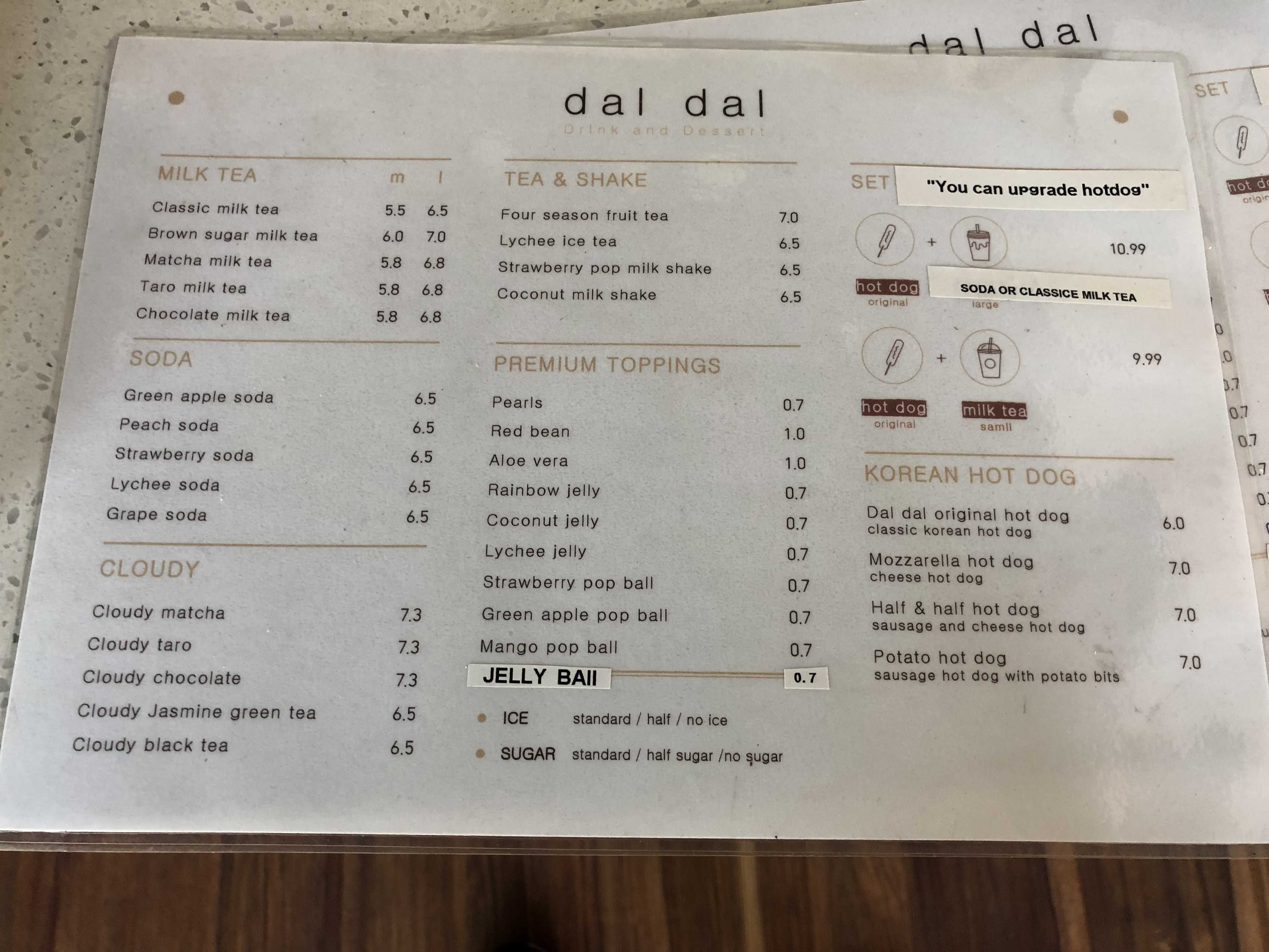 핫도그 말고도 밀크티나 음료수, 아이스크림도 같이 팔고 있는 집이다.