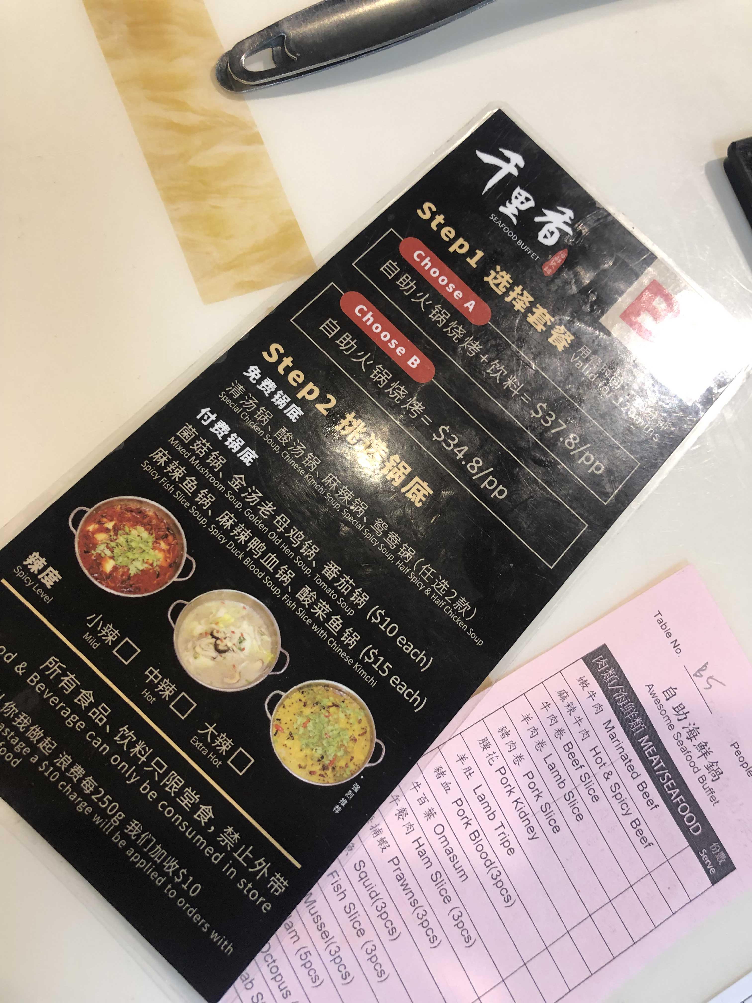 온통 중국어지만.. B 세트는 음료수 제외하고 훠궈만 무제한으로 하는 옵션이라고 한다.