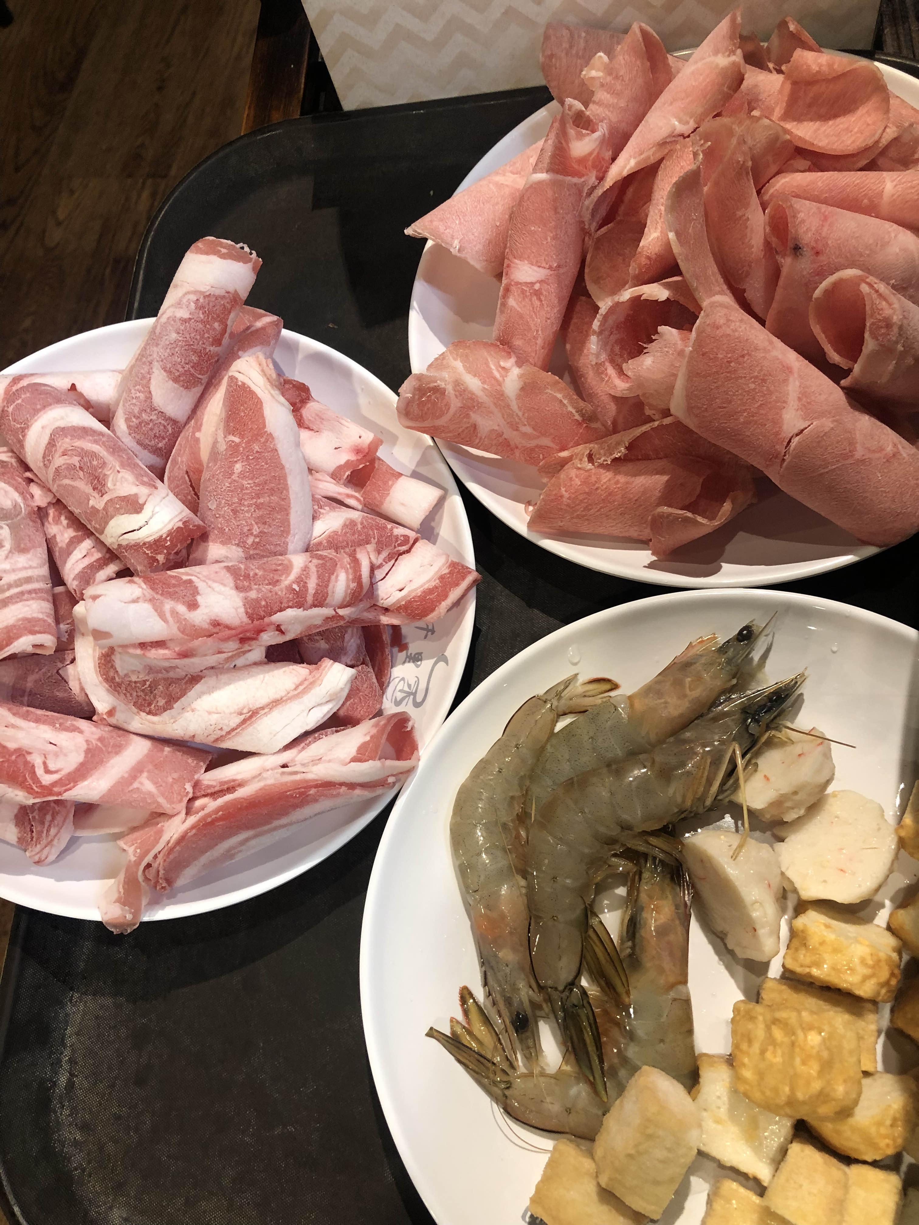 한참 소스 구경하고 콜드 푸드 보다보니 시킨 샤브샤브 재료들이 도착해있었다.