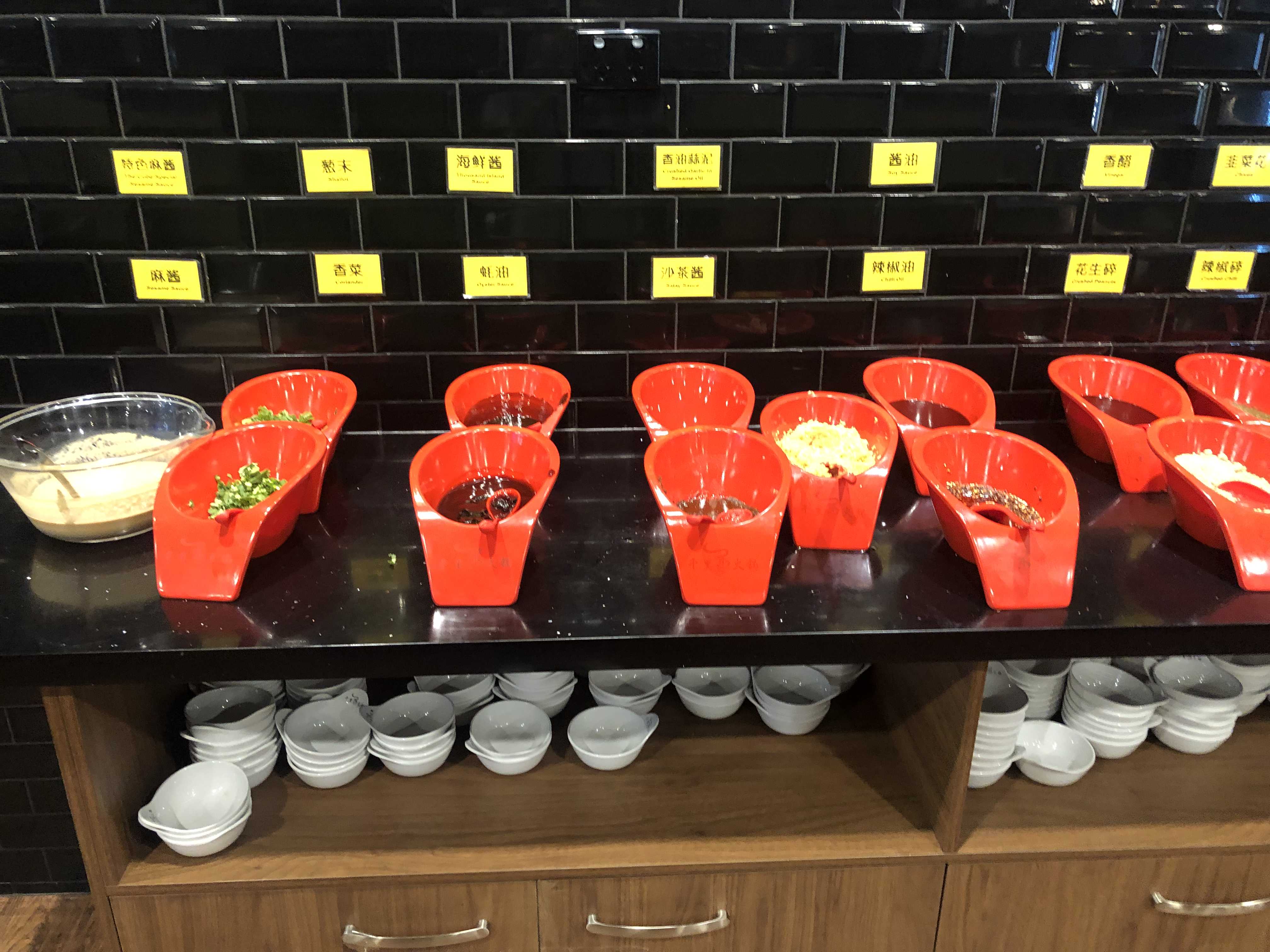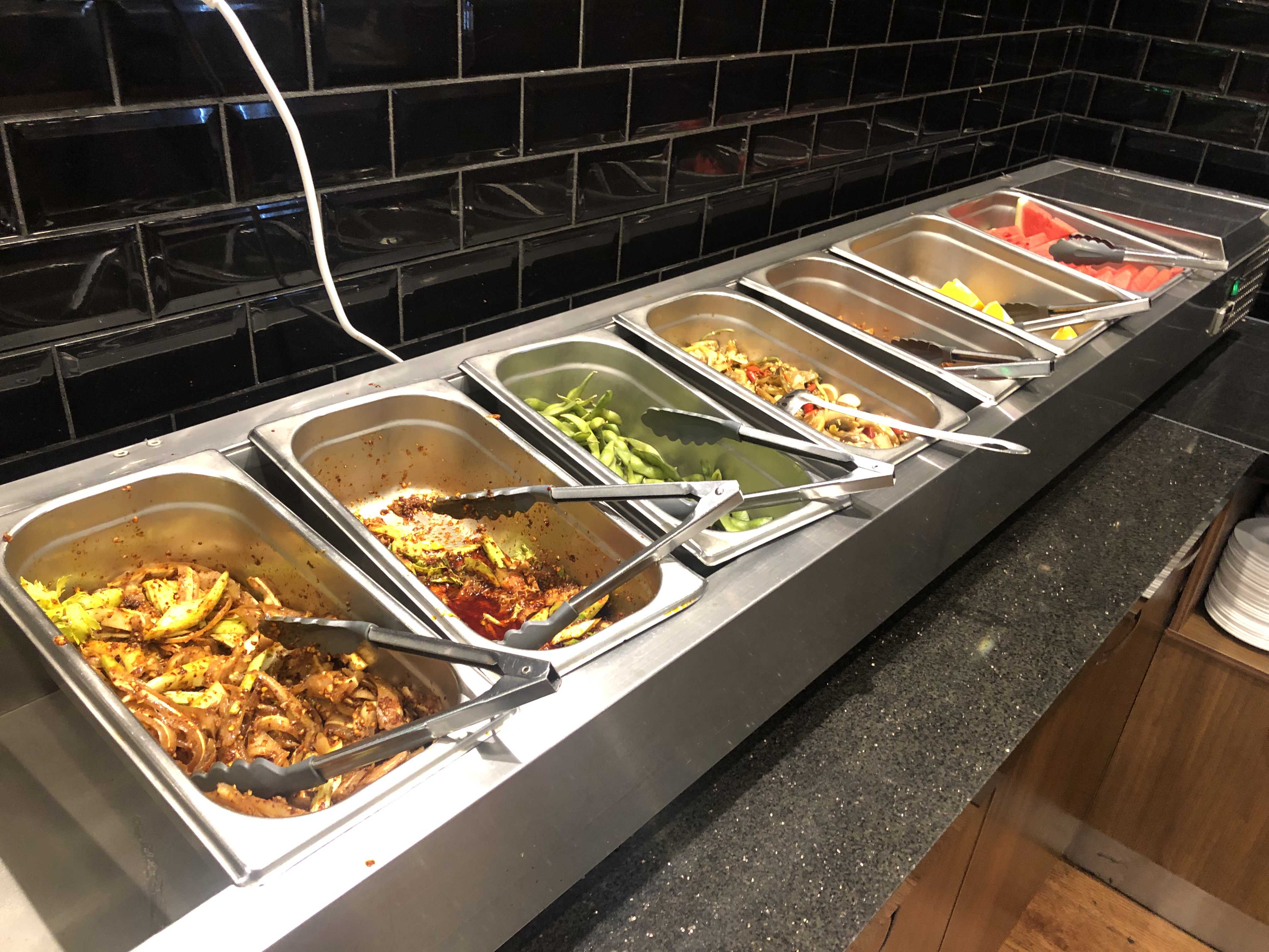 모든 샤브샤브 재료들은 종업원들이 가져다주지만 소스나 콜드 푸드는 직접 가져다가 먹을 수 있다.