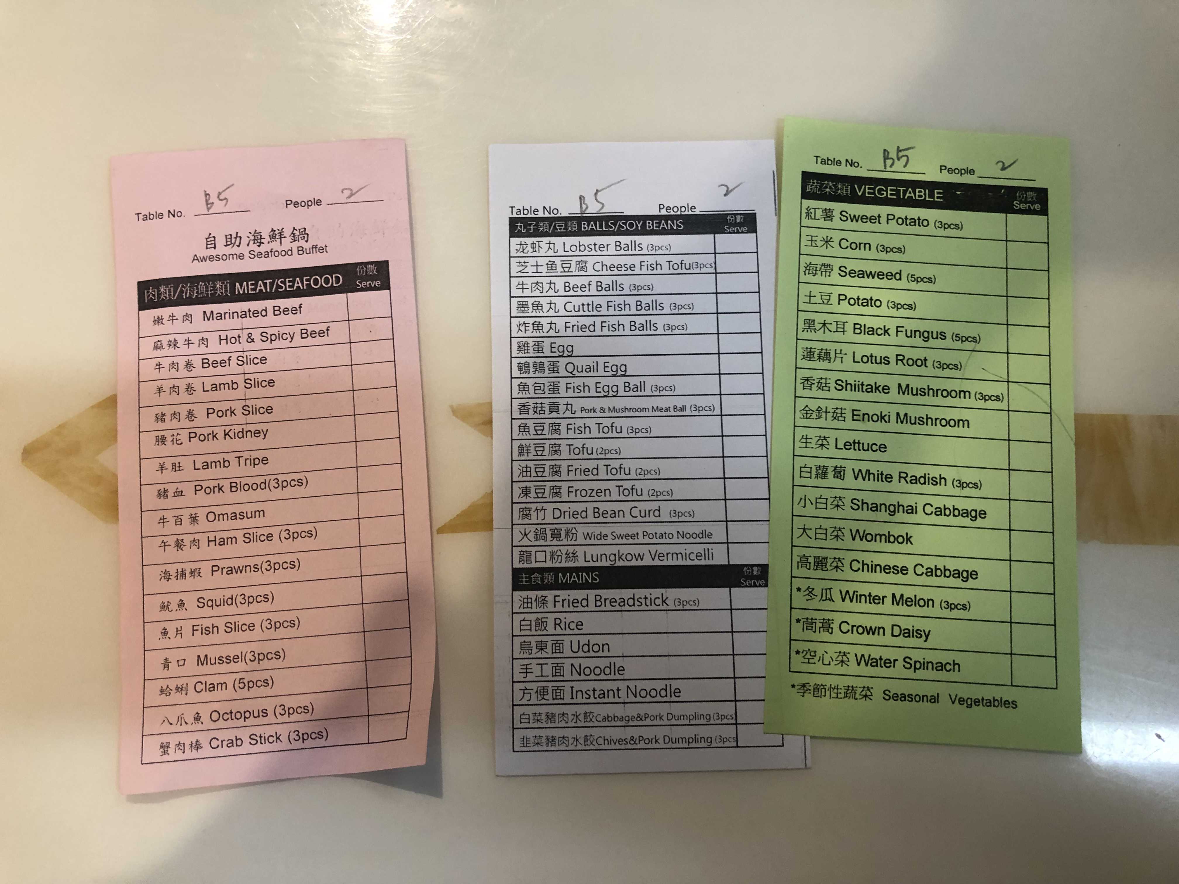 원하는 재료를 체크해서 종업원에게 주면 해당 재료들을 주는 방식이다.