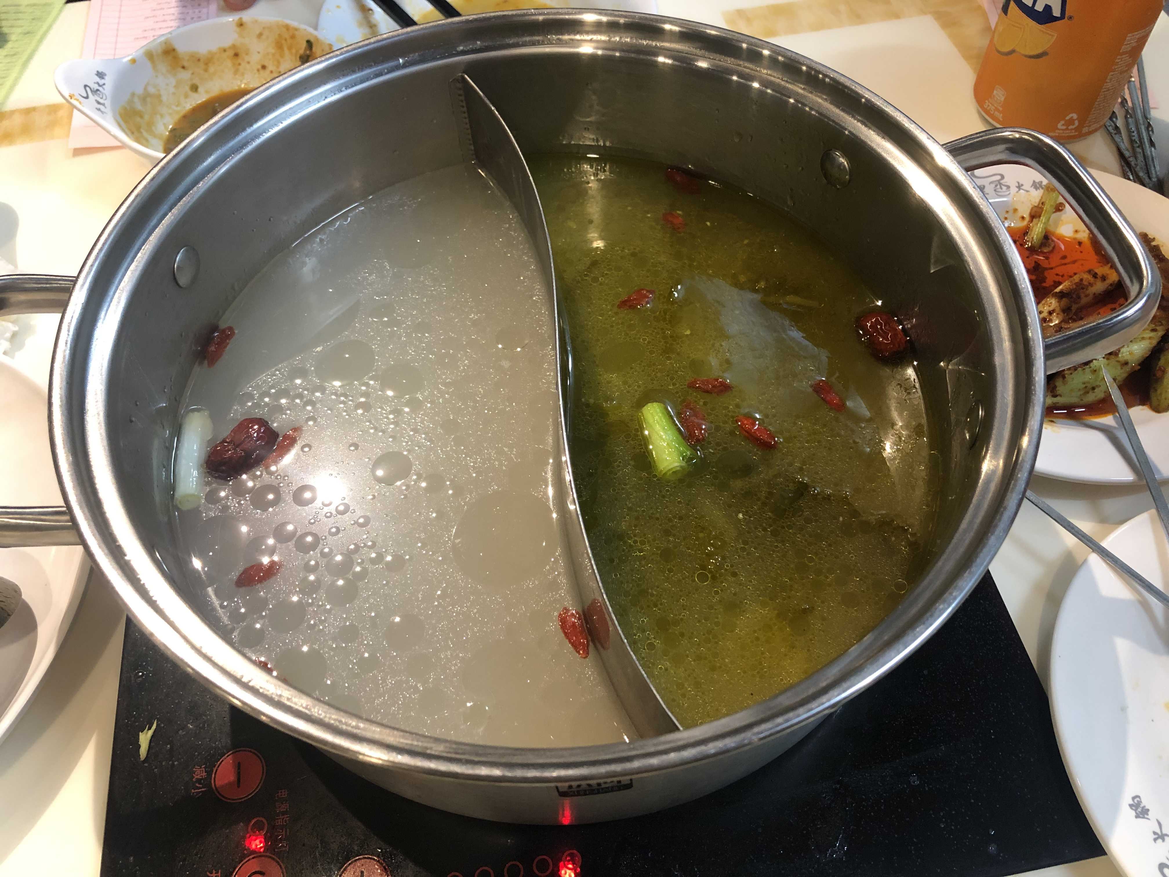 Step 2 에서는 훠궈의 베이스가 되는 국물을 고르는 것인데 1번 국물은 너무 맵다.