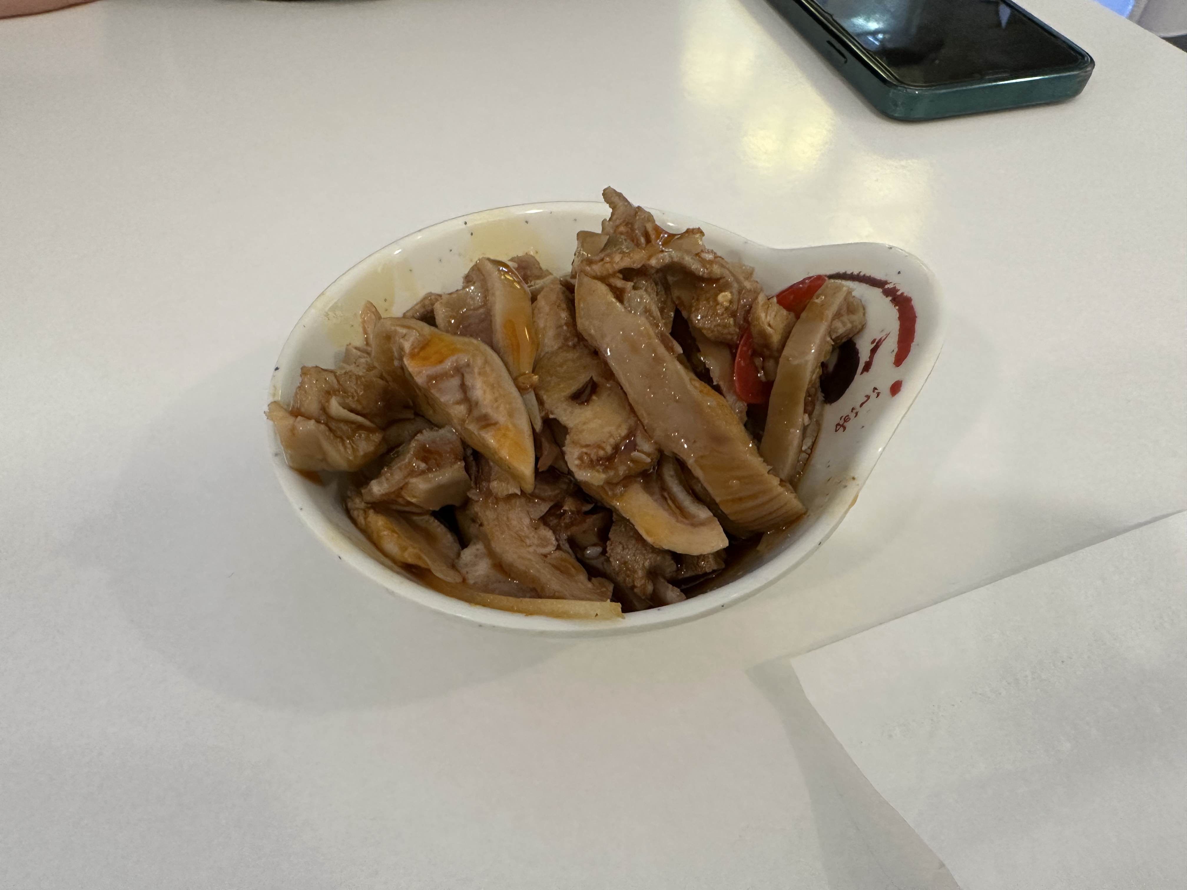 다섯번째 메뉴가 오소리 감투를 칠리 소스에 무쳐서.. 차갑게 나오는 반찬인데 이것을 주문했다.