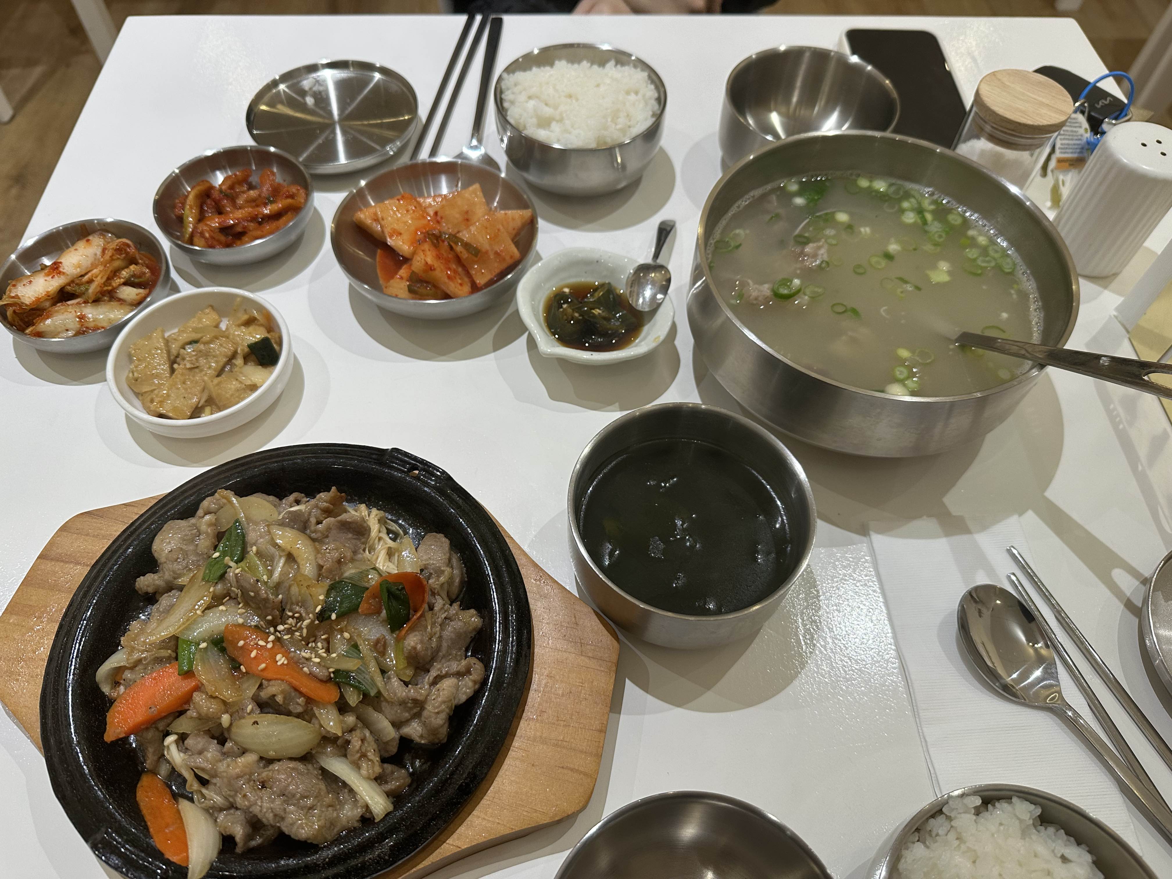 돼지갈비 정식은 4개의 반찬 그리고 미역국과 함께 서빙되었다.
