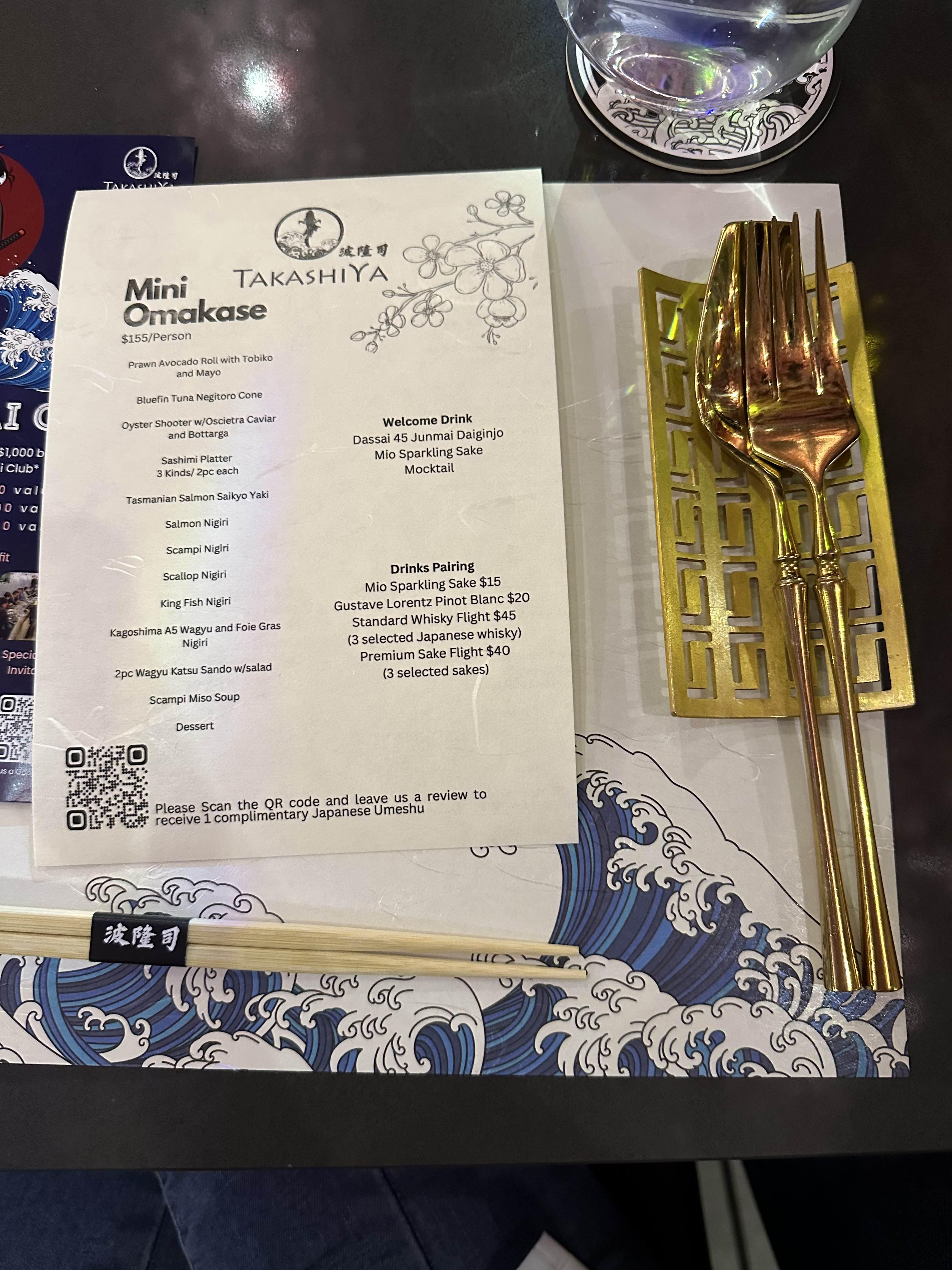 미니 오마카세 가격은 인당 155불이고 진짜 오마카세는 한 사람당 250불 + a 였던 것으로 기억한다.